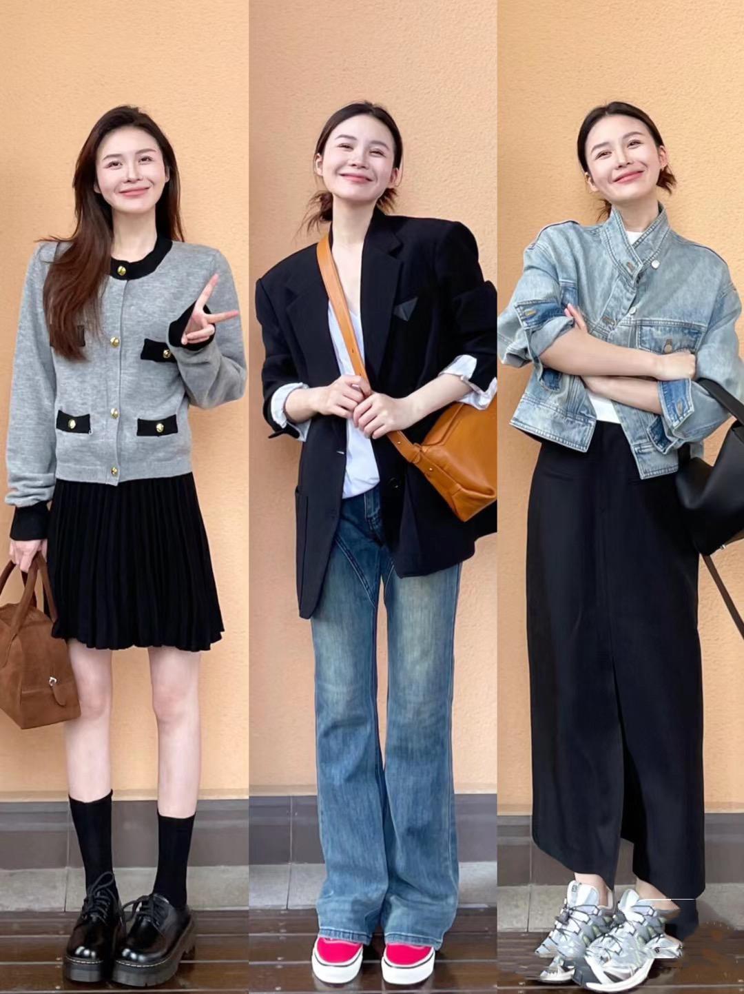 比如寬鬆的西服外套,搭配了白色基礎款T恤,有一種清爽又耐看的美。用寬鬆的黑色西服外套,搭配修身的藍色牛仔褲,鬆弛大方又顯腿長、也是一種比較高級的穿搭。