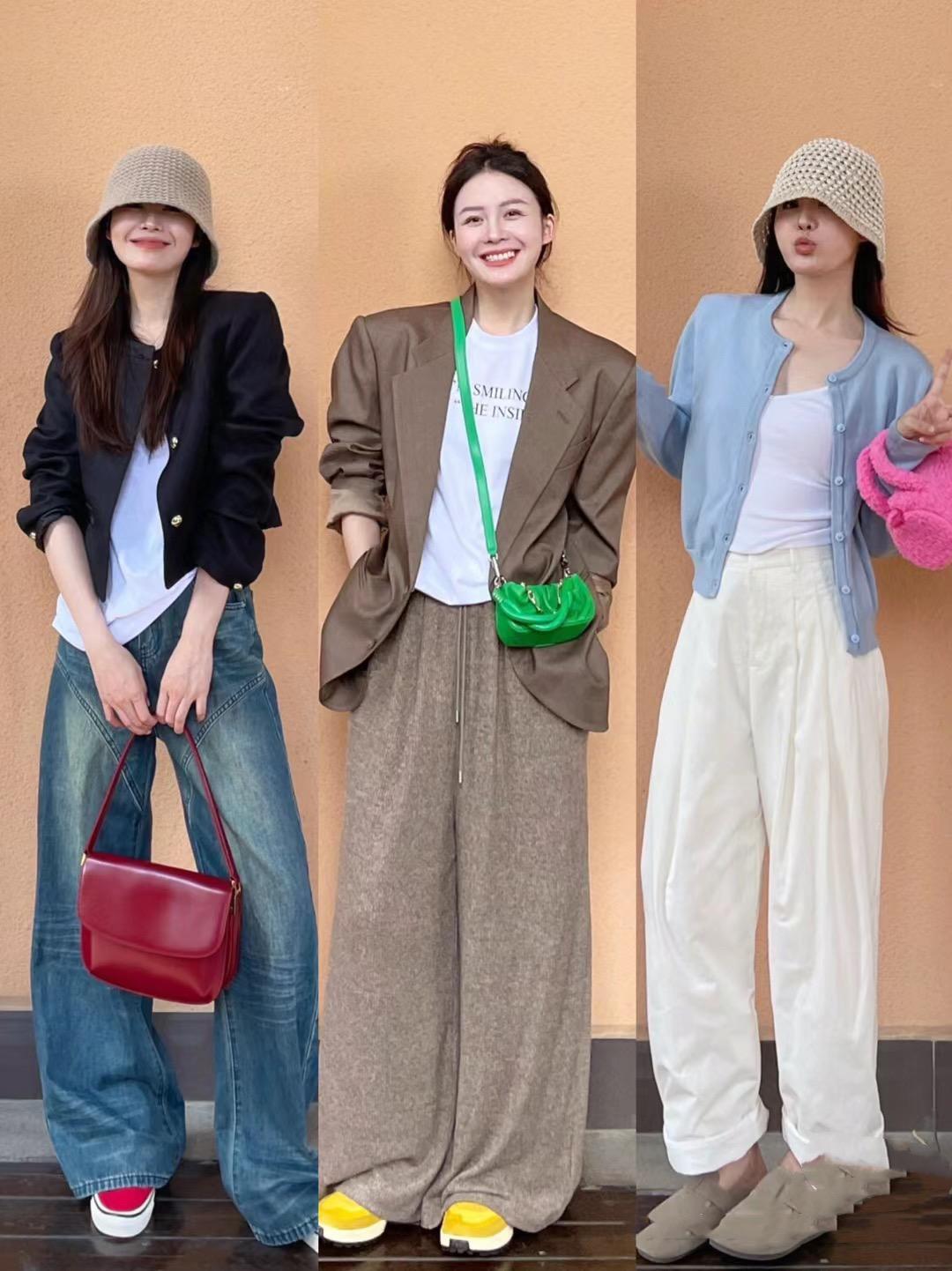 比如寬鬆的西服外套、寬鬆的針織衫、高腰的闊腿褲,隨意的搭配白色T恤或者白色吊帶,就可以塑造出更加清爽大氣的美,鬆弛又大方。