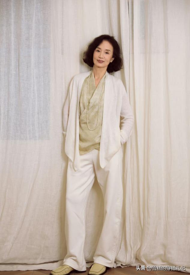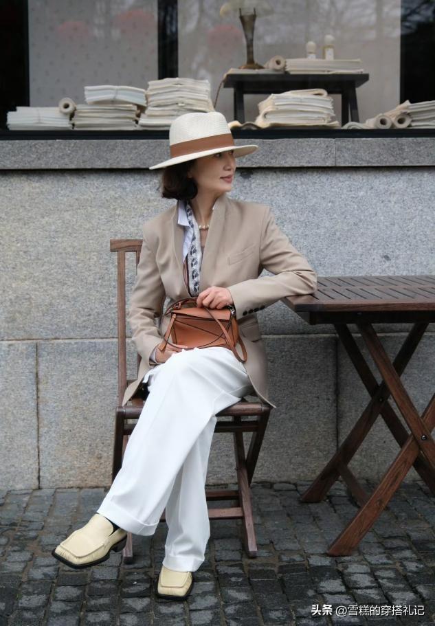 俗話說一白遮百醜,這一點在服裝搭配上也體現的淋漓盡致。如果你本身顏值不高,身材也一般,那麼完全可以嘗試一身白的穿法,藉助清爽乾淨的配色來烘托質感,顯得整個人格外的優雅,有氣質。但是不要選擇太扎眼的冷白色,低飽和度的奶杏色會更加得體,而且還不挑膚色與年紀,四五十歲的黃皮膚女人,也可以放心大膽的穿。