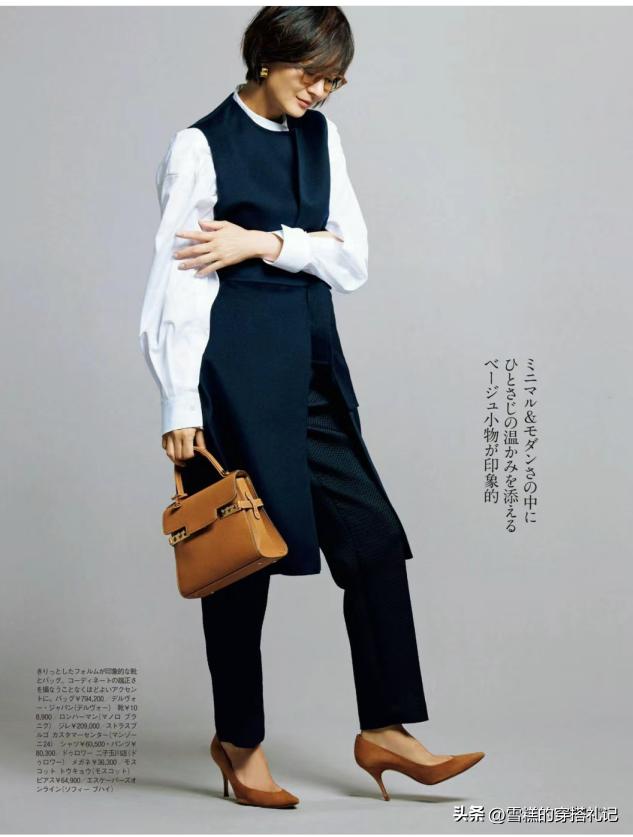 如果不想大面積的穿淺棕色,選擇一個棕色系的質感包包,也可以更好地提升整體的氣質,但注意選擇輪廓線條比較清晰的樣式。