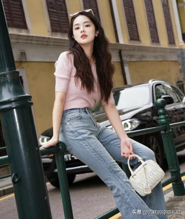 偏粉色調的小香風上衣,可以更加契合我們追求小女生以及公主風的穿衣特質,想要讓休閒感與溫和感相互疊加,那麼淺藍色的牛仔褲就大行其道了,藍色與粉色的疊加,讓你掌握不同風格的嘗試。