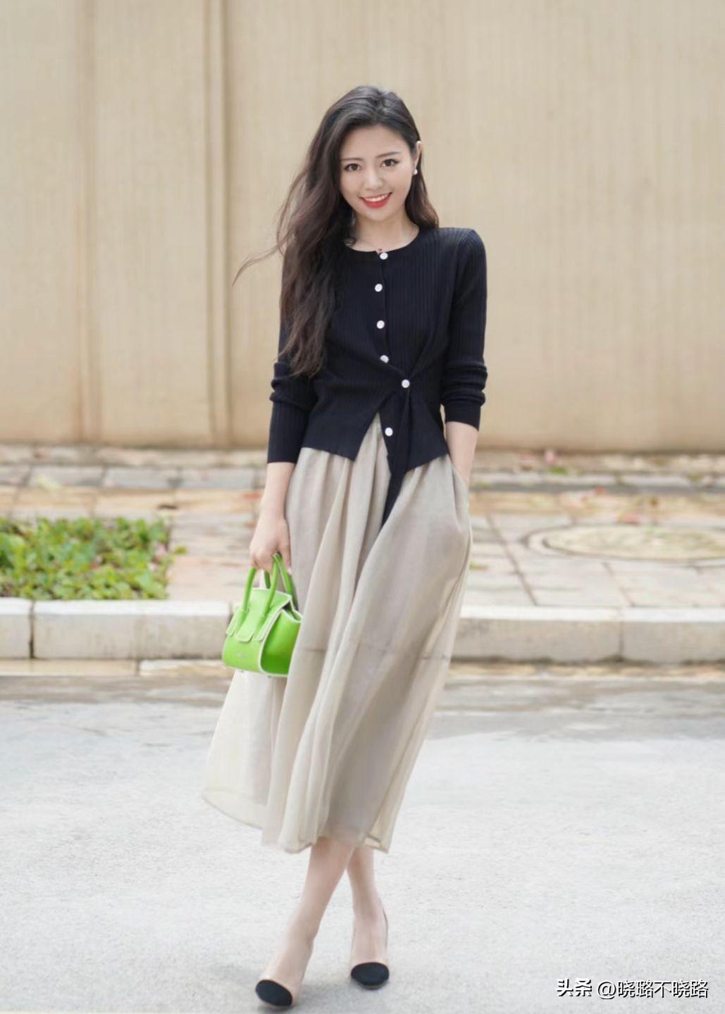 “奶奶衫+長裙”=今春最洋氣好看的打扮,特適合三四十歲的女人