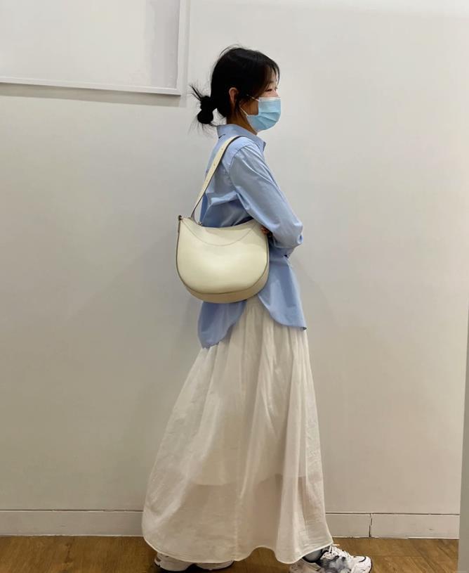 襯衫與裙子的疊穿,在材質上的選擇,還是有比較大的空間的,棉質、絲綢、棉麻等,選擇不同的材質裙子搭配,所展現出來的風格就是不同的。