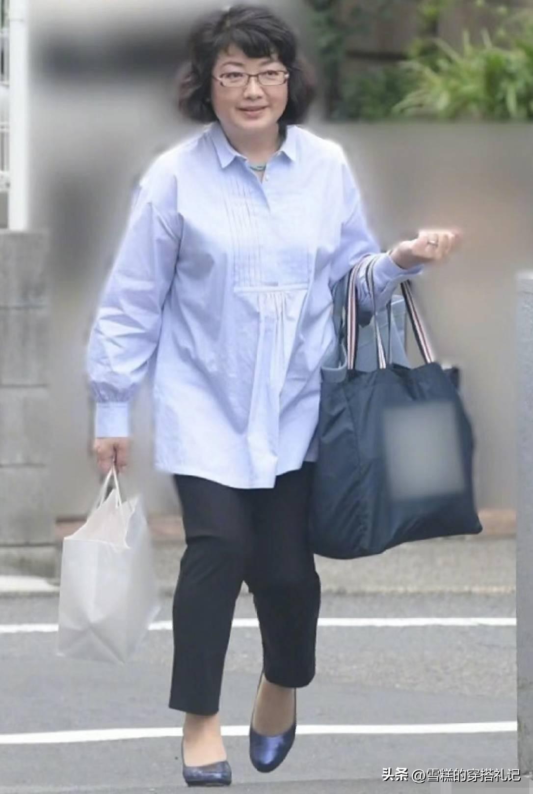 面對着微胖的身材,山口百惠特別擅長利用露鎖骨的上衣,從視覺上達到收縮感。比如V領款式的襯衫,穿在身上就會很有氣質,再佩戴一條精緻的鎖骨鏈,別提有多迷人了。