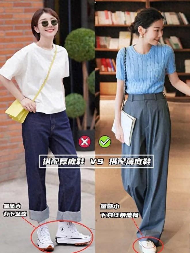 鞋褲同色、塑造上短下長的比例、更顯雙腿修長