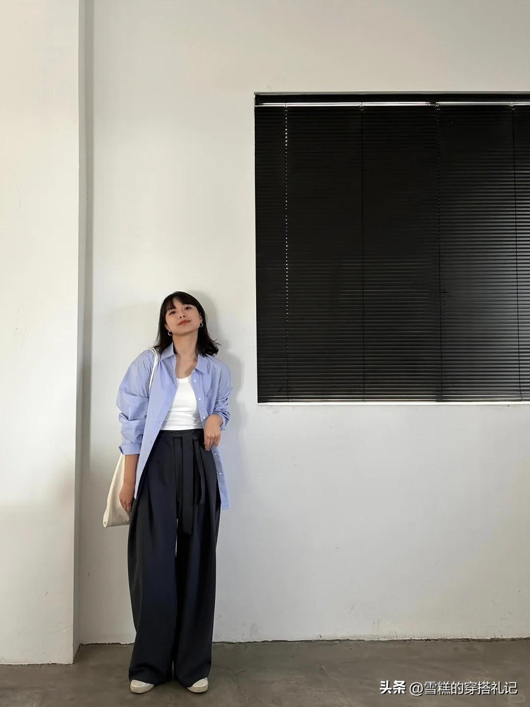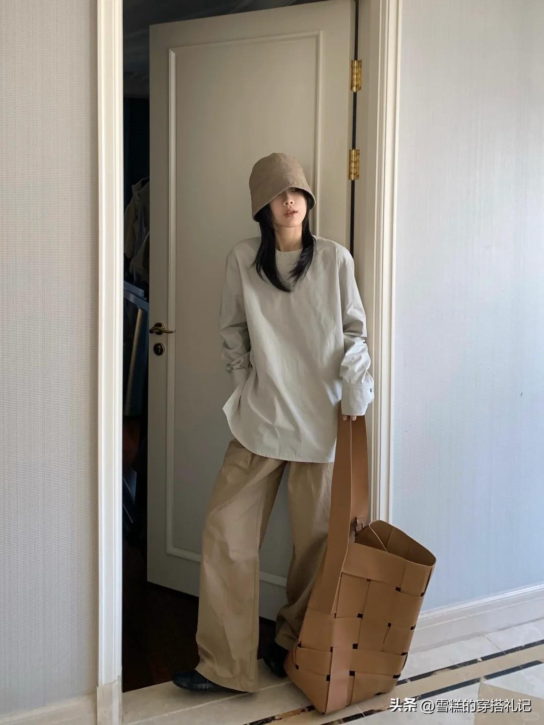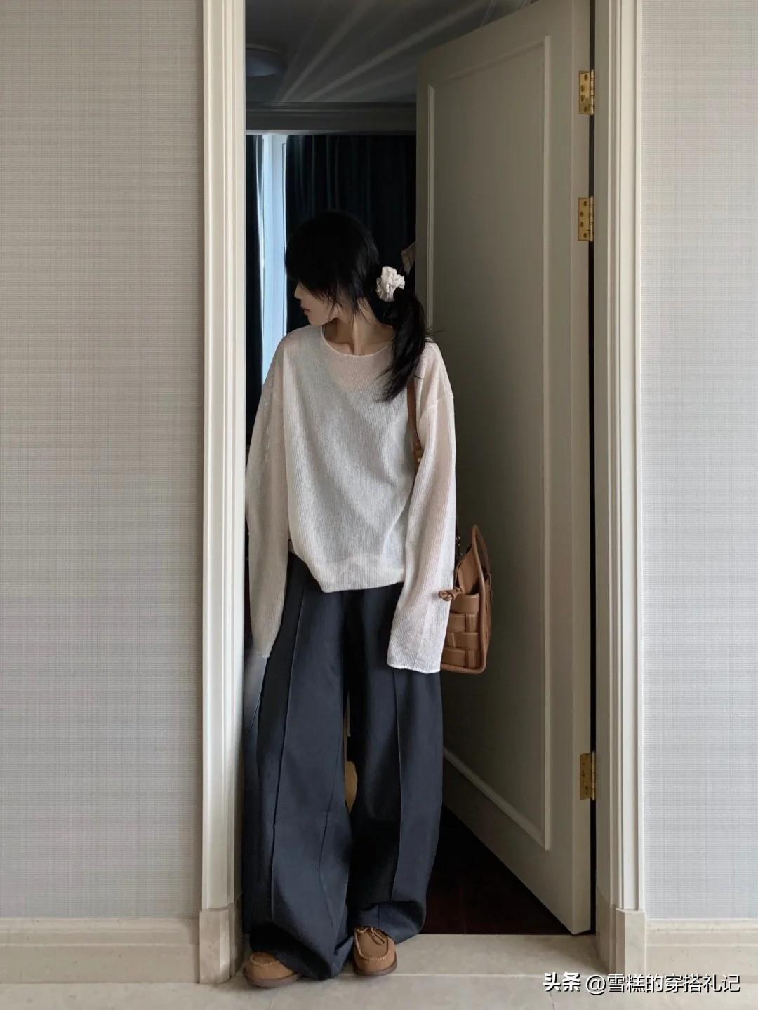 相比於其他褲子,西裝褲整體的質感非常好,獨具順滑垂墜效果的它可以幫助大大延長腿部的修長感,同時搭配純色的基調,整體呈現出非常極簡又有氣場的穿搭。