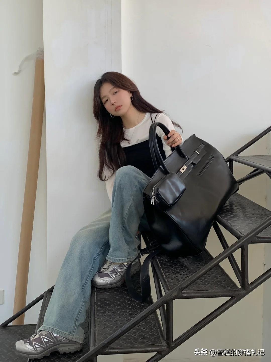 b牛仔褲可以說是四季搭配中的常勝將軍,它可以完美適應不同風格的上衣,幫助呈現出和諧統一的造型,並且加入不同的設計元素,進而優化整體的比例。