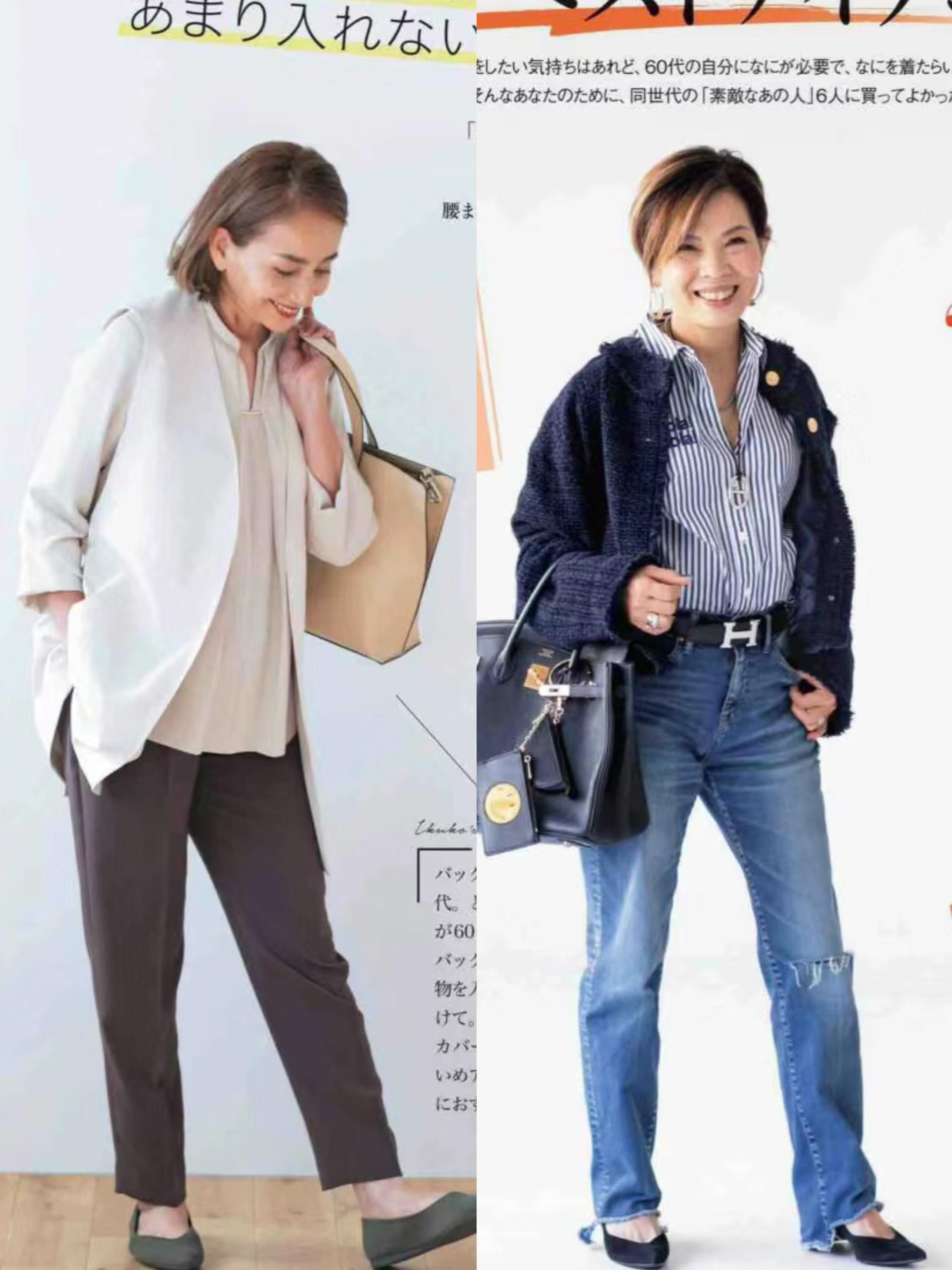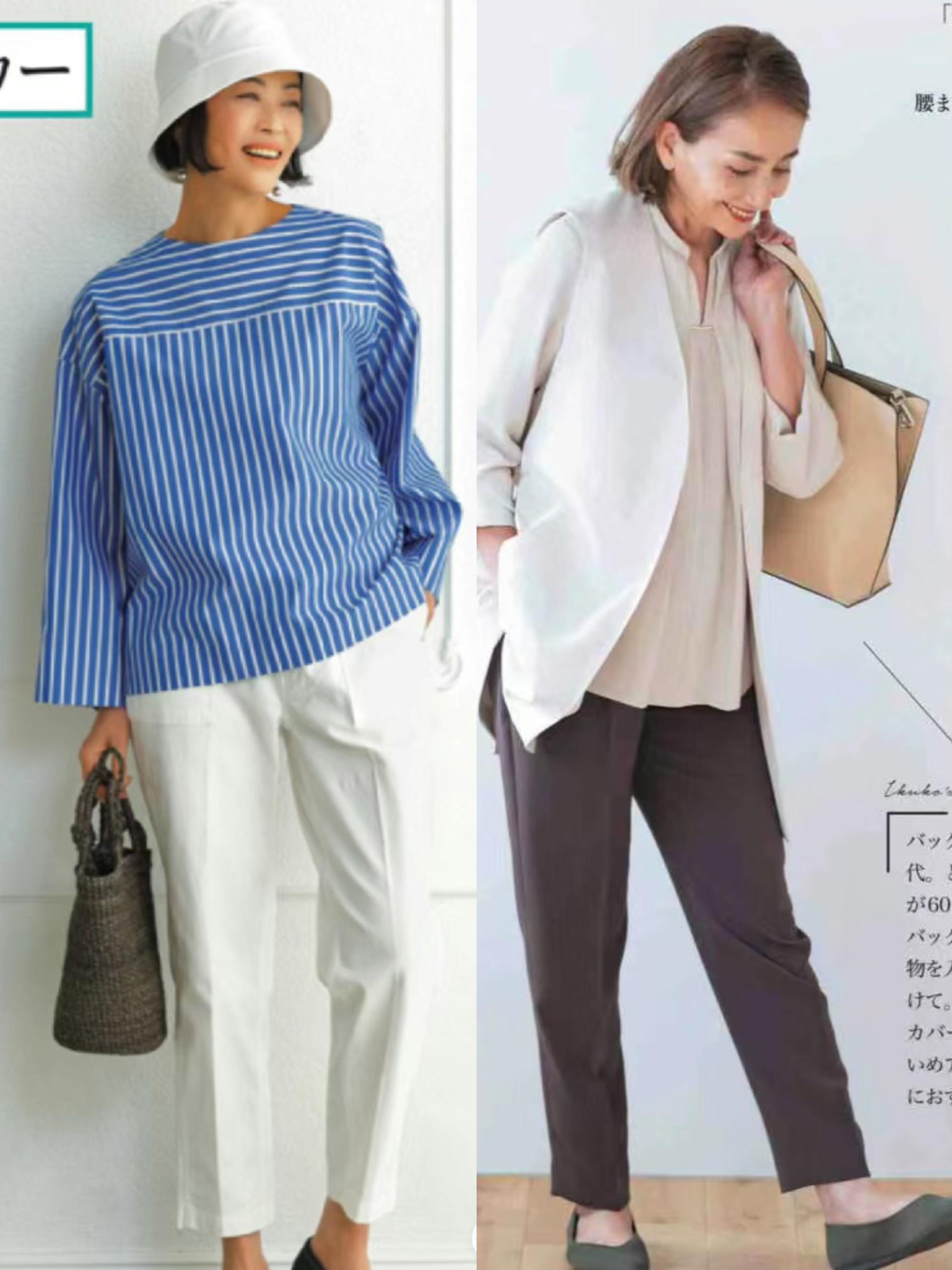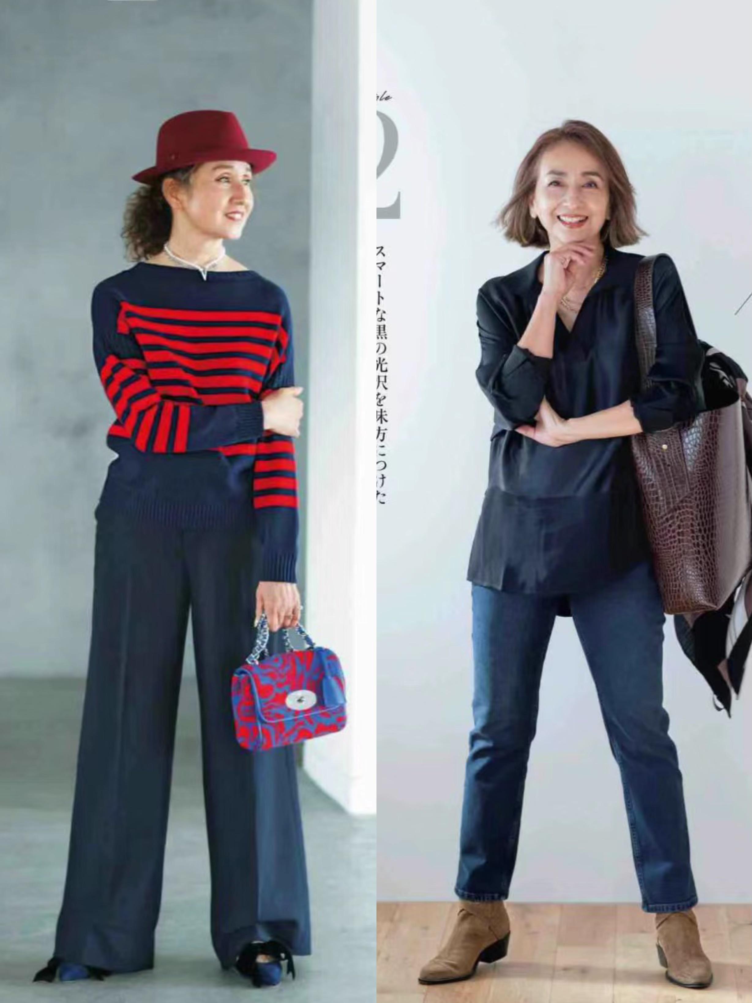大齡女性,對於自己的容顏、其實沒有必要遮遮掩掩。大大方方的表現自己,即便是白了頭髮、也可以優雅得體。穿寬鬆的針織衫,配闊腿的直筒褲,簡單舒適又很體面。