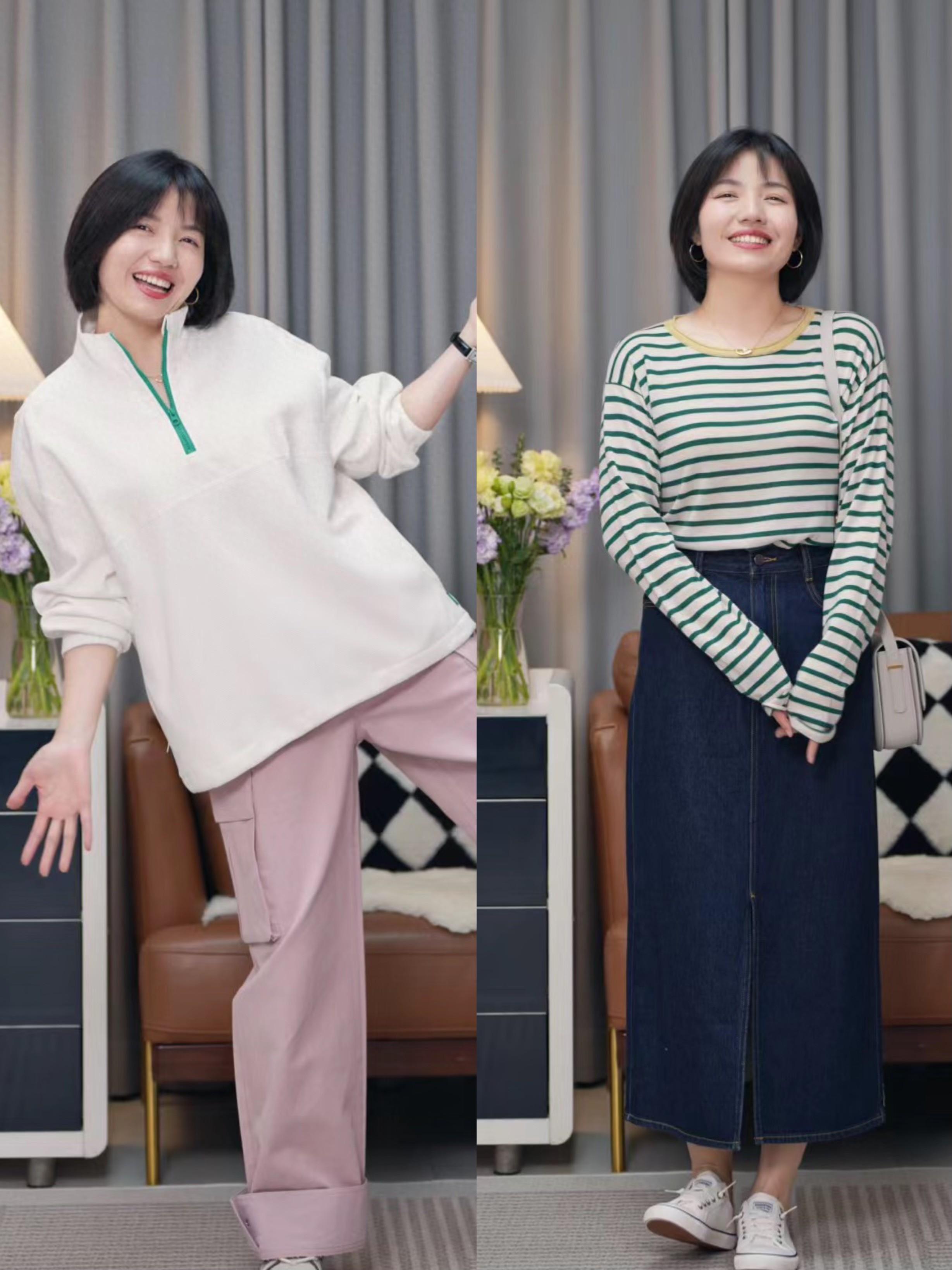 比如黑白條紋的針織衫、或者H型剪裁的半拉鍊上衣。淺色系的服裝,自帶輕盈柔和之美。對於身材微胖的女人來講,也可以塑造出新鮮活力的姿態,弱化年齡感。