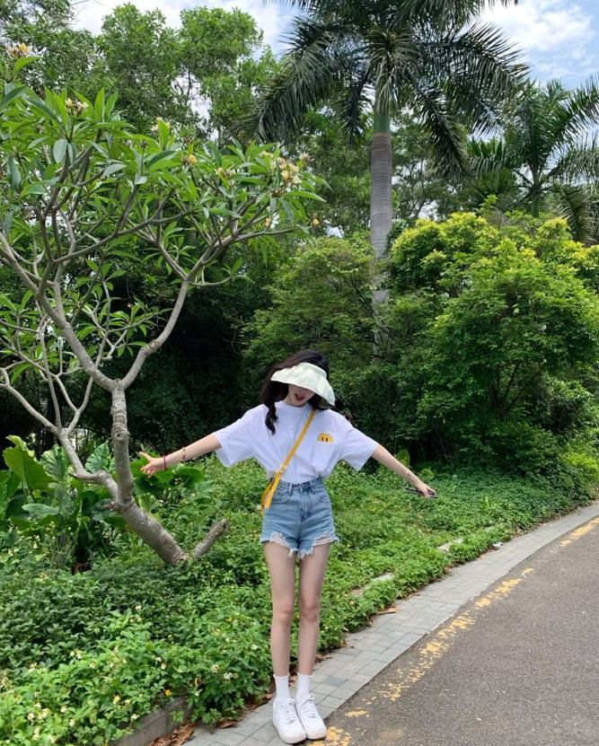 當然,對於擁有一雙大長腿的姐妹,選擇短褲來穿就好,簡單配t恤就很好看時尚。