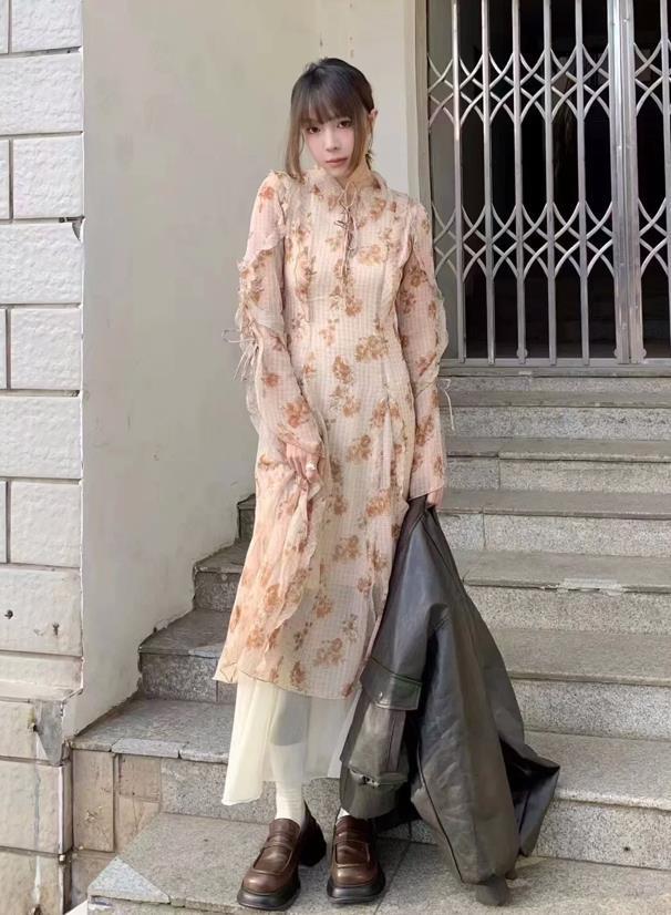 喜歡這種淺淺淡淡又素雅色調的碎花連衣裙,充滿日系風格,自帶氛圍感的裙款,結合了薄紗的材質,自帶一種輕盈和唯美感,選擇一雙棕色皮鞋來穿,復古氣息滿滿。