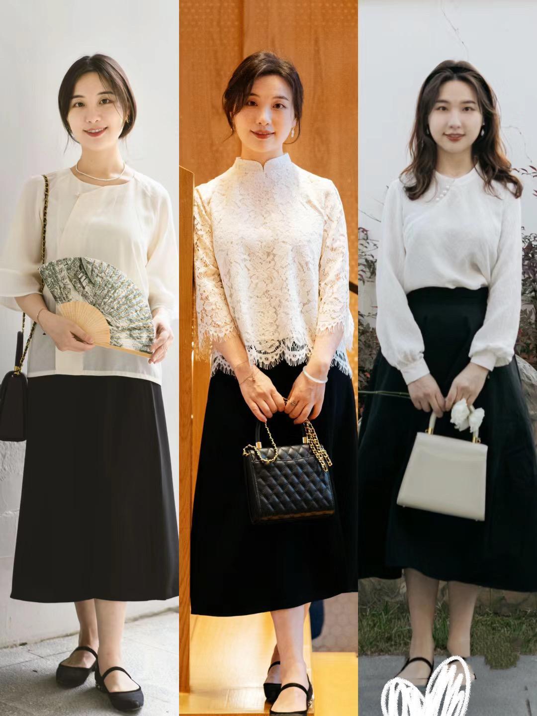 用清爽細膩、面料透薄的白色襯衫來搭配黑色半身裙,經典的黑白配是一種素雅的裝扮。這種素雅的裙裝,溫婉又大方,小個子女生穿起來也更彰顯氣質美。