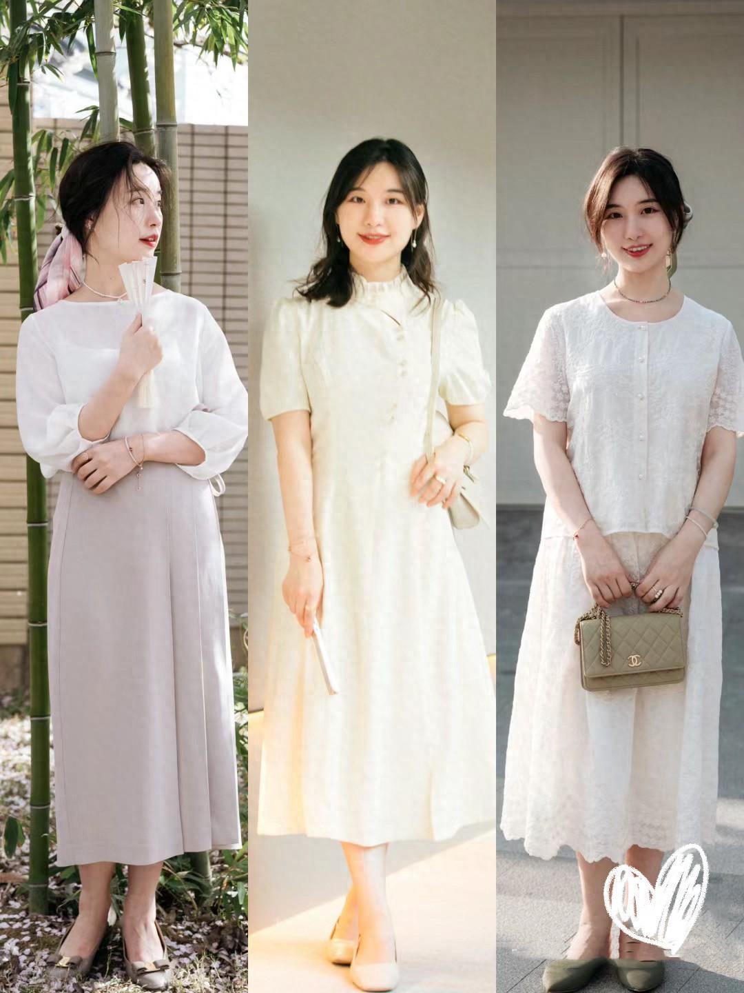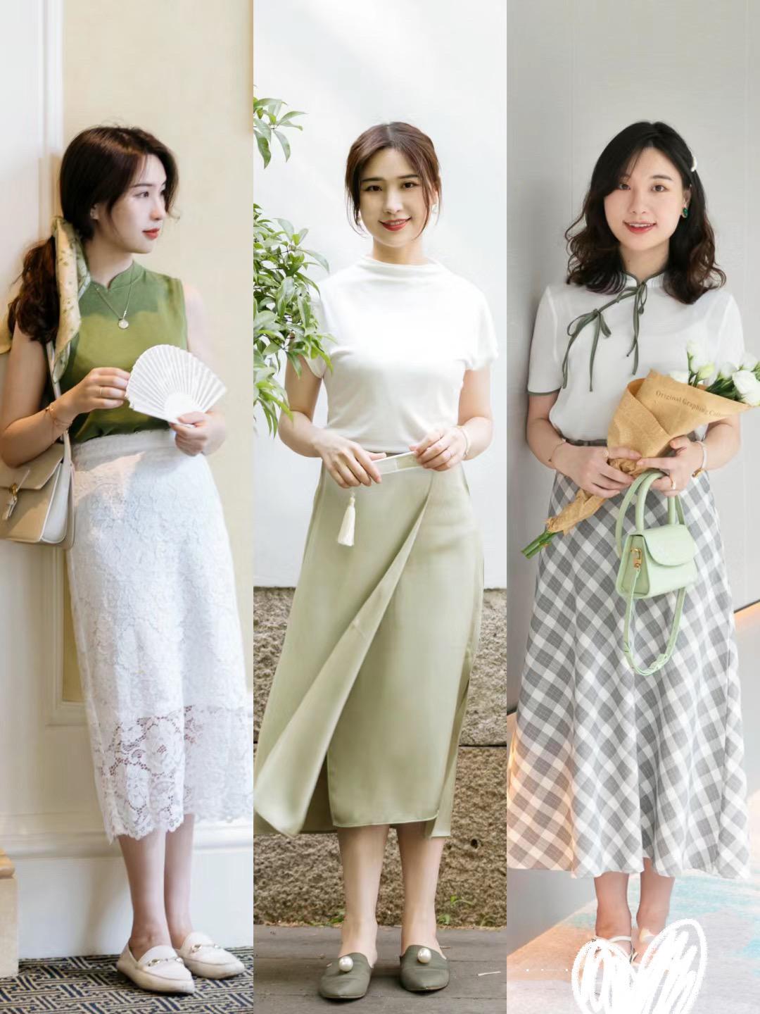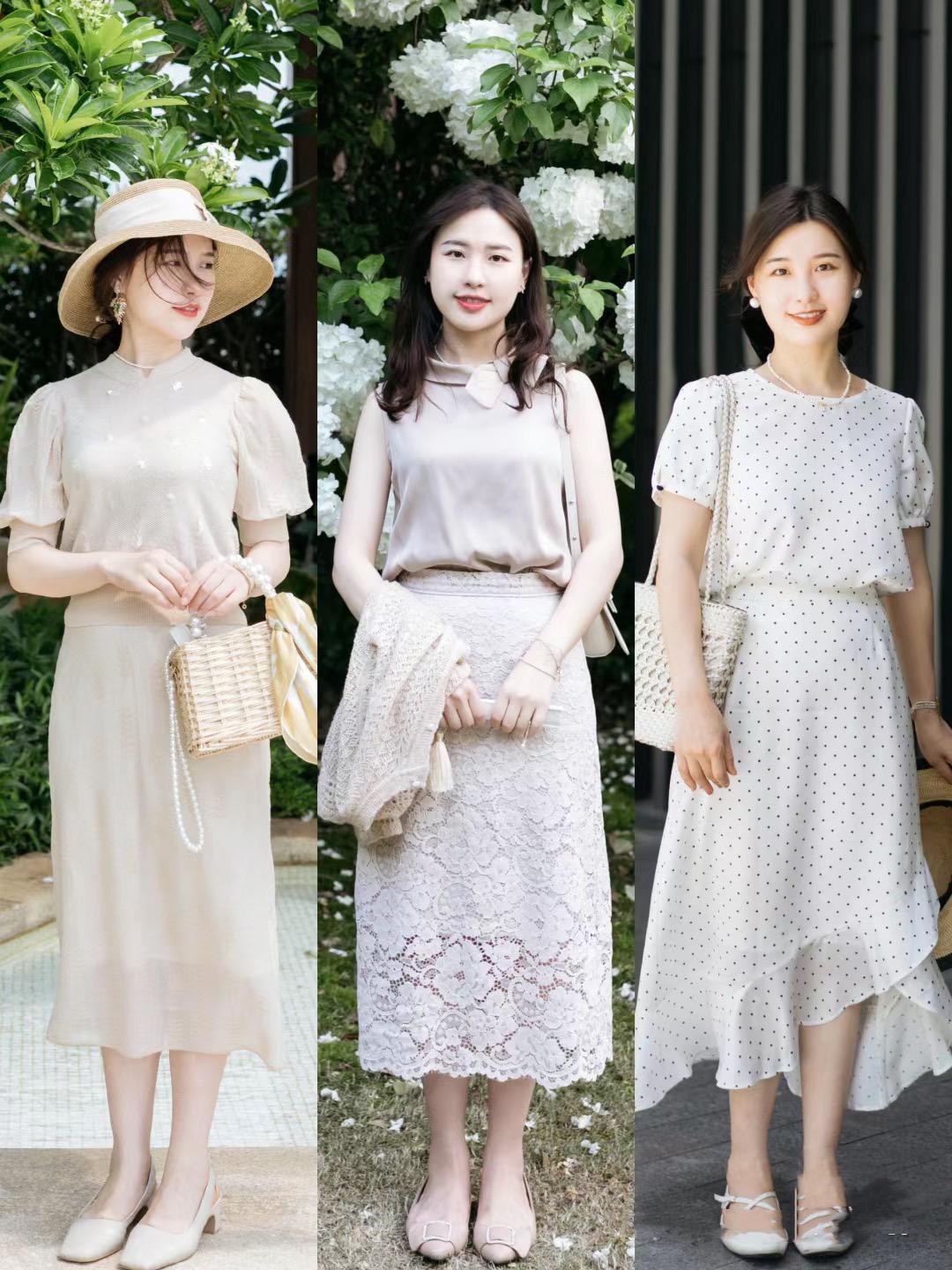 不管是連衣裙、還是半身裙,都可以搭配一種過膝的長度。過膝的裙裝,穿起來溫柔又體面。配一雙淺色系的單鞋,露出腳背的線條、更加輕柔浪漫。