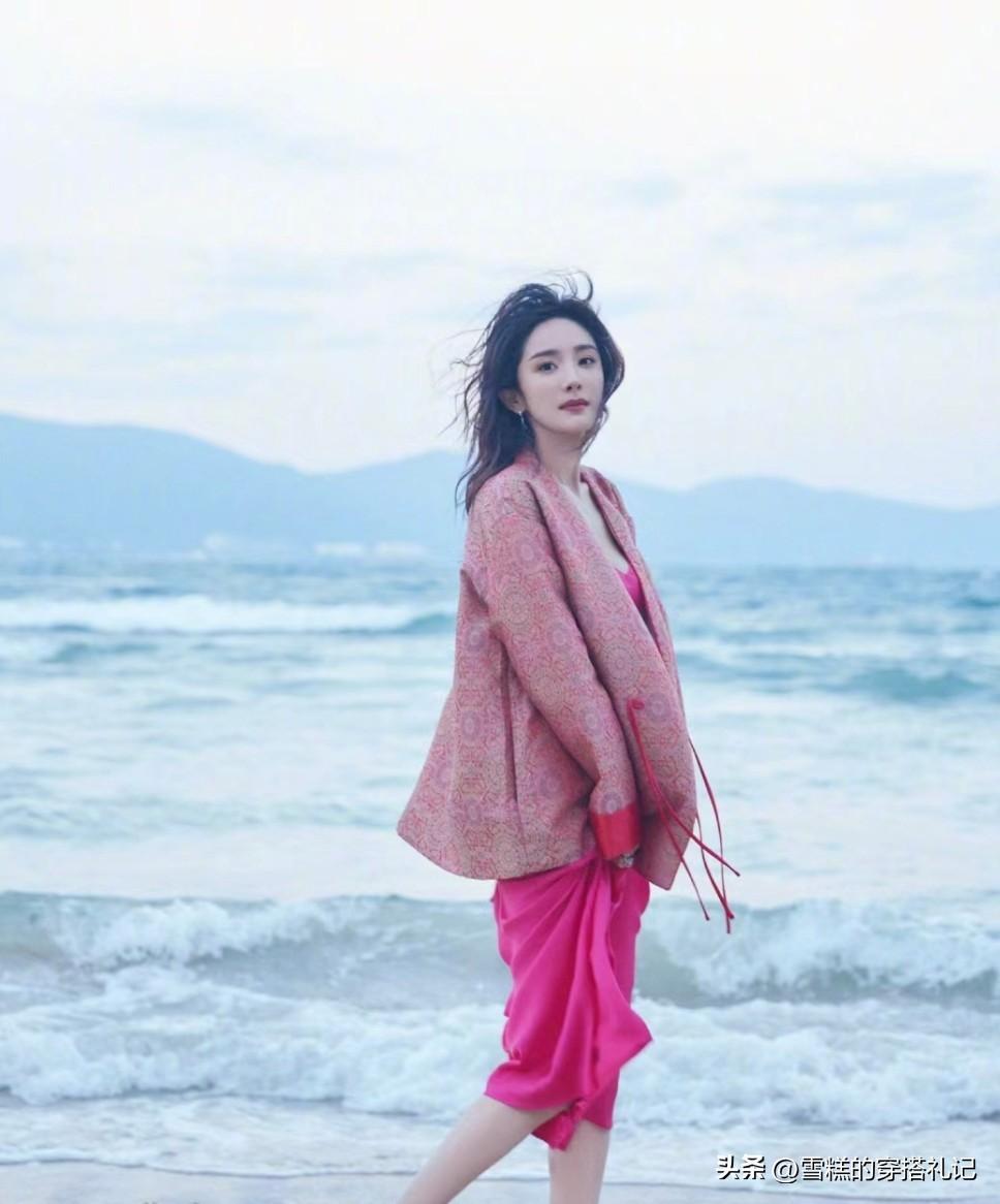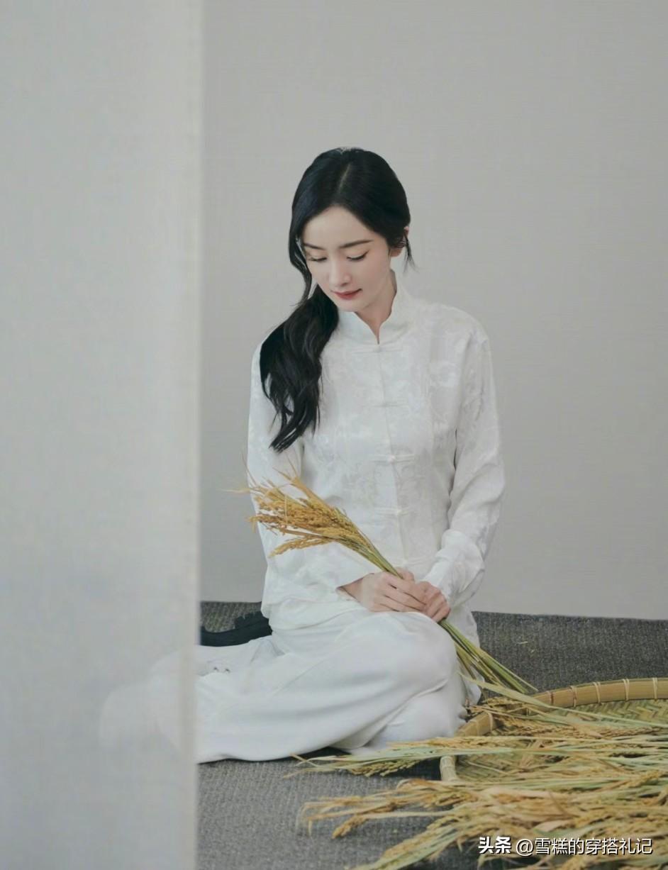 在選擇色系的時候也建議大家可以借鑑一下楊冪的搭配,非常基礎的一些顏色系列之外,但凡帶一些彩色調的基本都是明度比較偏低或者是飽和度比較低一些,搭配起來的時候更加的呈現復古的中國風韻,而且對於肌膚的狀態和氣質的襯托都很有優勢哦。