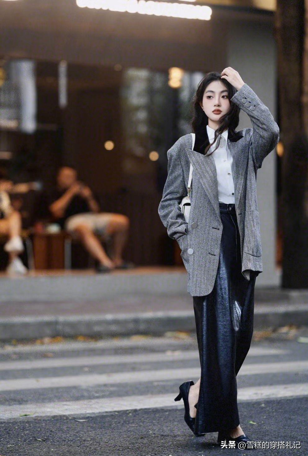 當然啦,也可以搭配一些極具優雅和隨性感的山本褲、或者是自帶時髦感優化於我們腿型的馬蹄褲,以及不挑人的簡約型百褶裙或者直接可以運用非常時髦的下身失蹤的穿搭。對於西裝而言都可以很好的進行結合,並且營造出來。