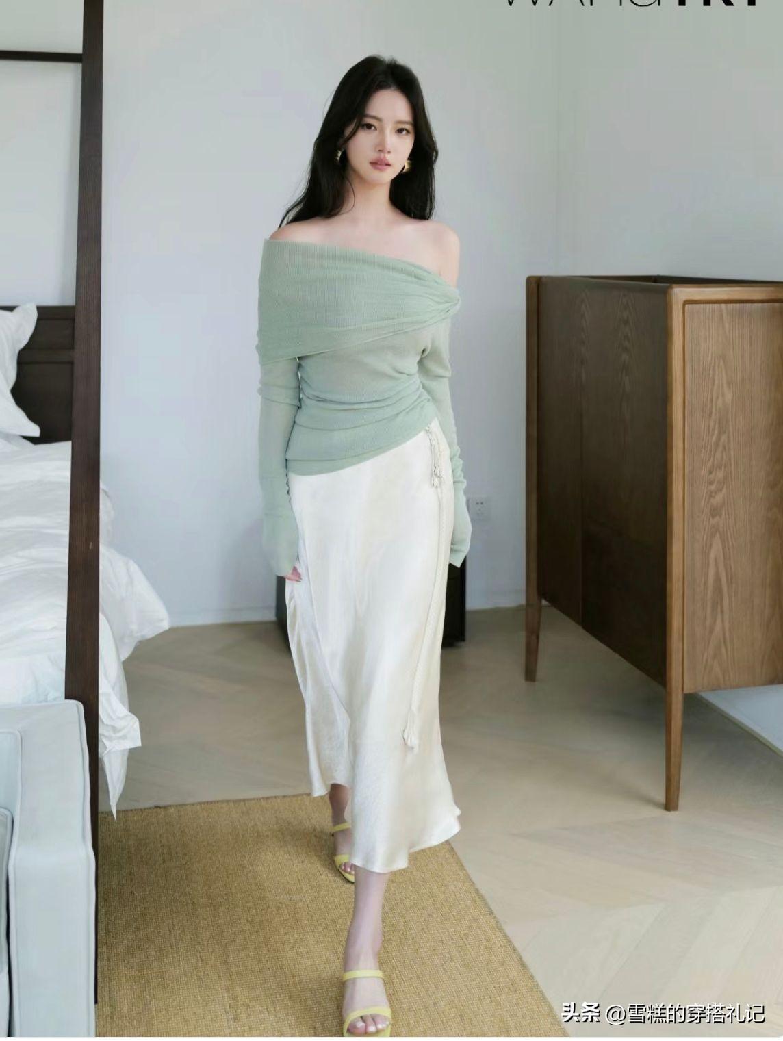 如果你的身形身材屬於比較纖細而且曲線富有一定美感的類型,那麼建議你這樣的身材優勢也不要遮掩住哦,搭配貼身的一字肩單品,下半身就可以結合非常富有魅力的後媽裙或者是馬蹄褲將腰臀以及腿型的魅力曲線完全的勾勒出來,真的是盡顯女性獨有的視覺魅力。