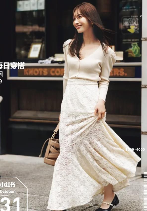 春季,針織衫搭配半裙,也是很溫柔氣質的,能營造出浪漫的氛圍感。