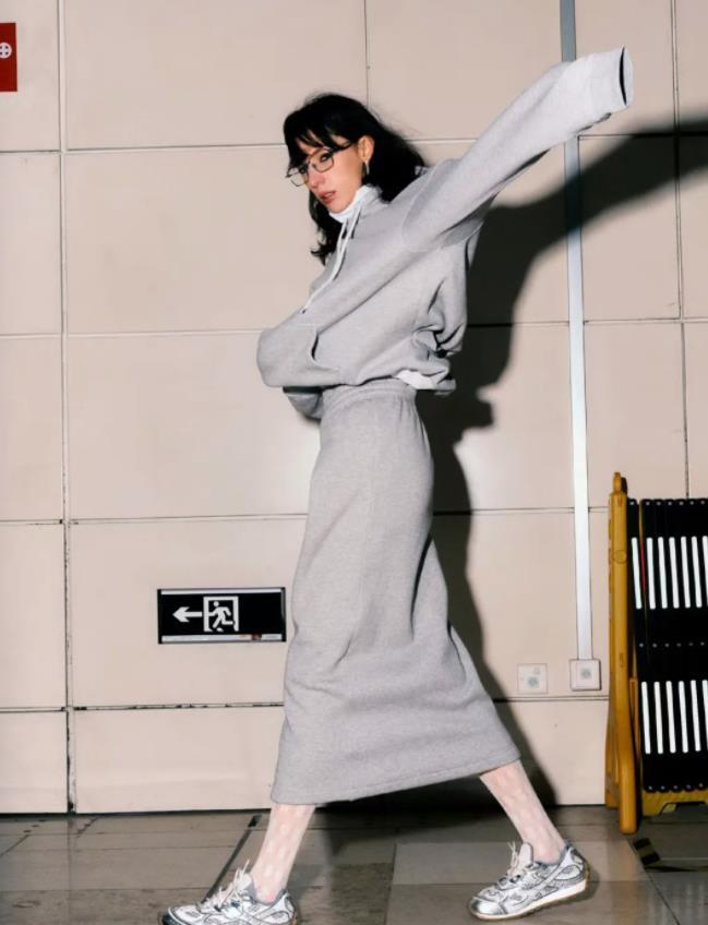 當你選擇“一身寬鬆”的穿搭時,可以適當進行露膚,這樣不僅給人增加透氣感,還能帶給你一份鬆弛。