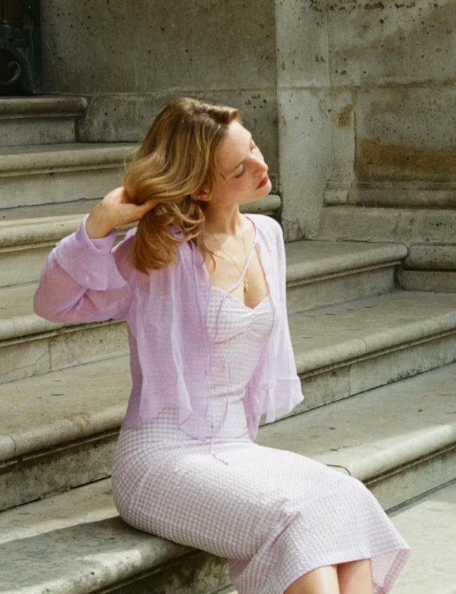 也可以選擇內深外淺的同色系穿法,讓人看起來更輕盈溫柔。