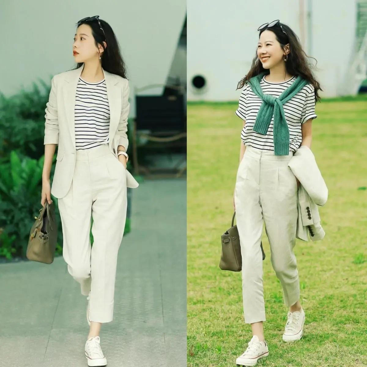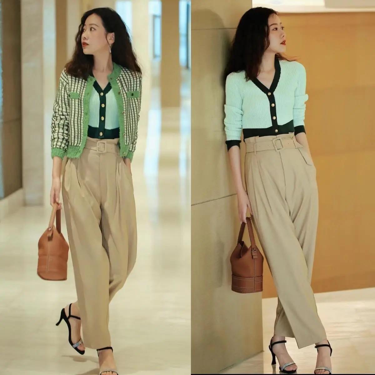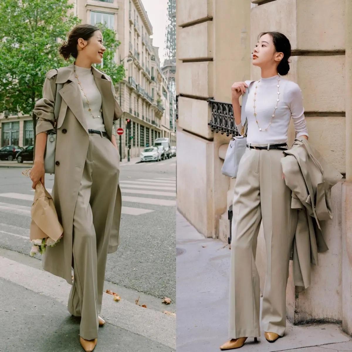 就像博主穿的基礎款修身打底衫,配一條高腰的西裝褲,上短下長、上緊下松、以及腰帶點綴統統上陣,給人一種高級利落、又體面大方的美。