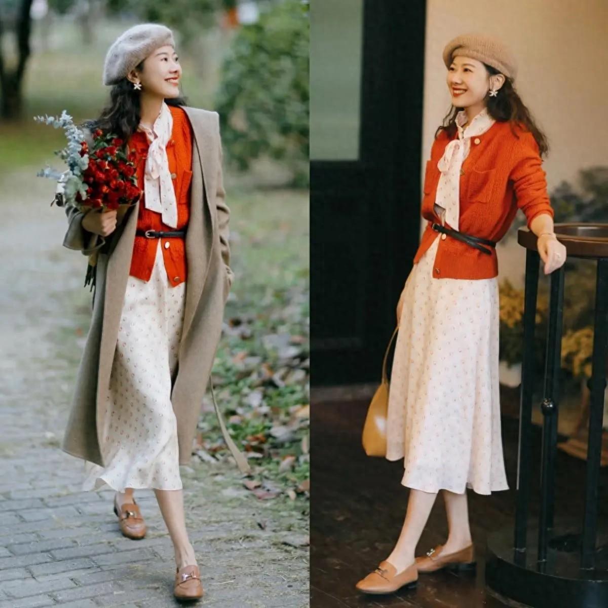 木子博主的穿搭,既保證了顏色不花、又格外的時髦醒目。比如波點連衣裙+紅色針織衫的組合,就非常的洋氣醒目。紅色針織衫靠近面部線條、顯白效果也是不錯的。