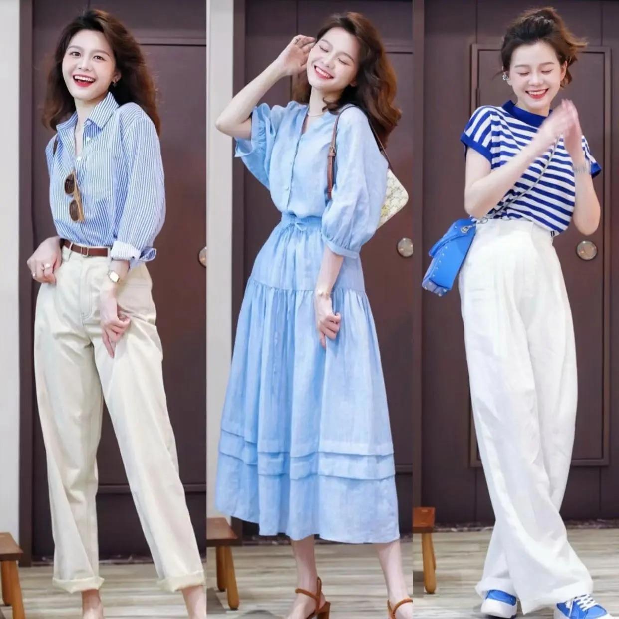 乾淨顯白的藍色襯衫,給人一種很清爽的美。鹽系風格的穿搭,不那麼柔美,卻會格外的清爽。像這種淺藍色的條紋襯衫,或者橫條紋襯衫,都擁有幾分英氣。
