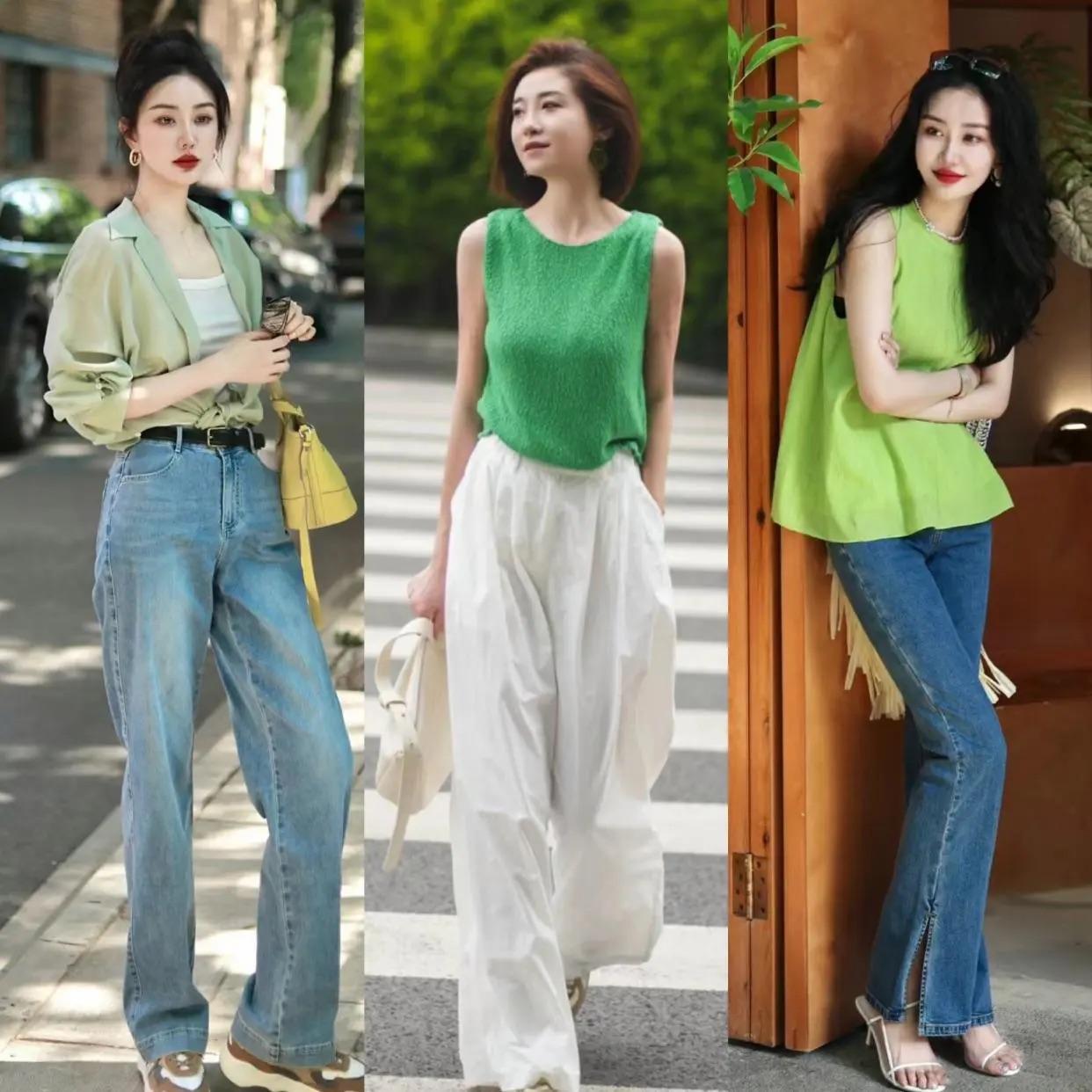 如果擔心白色T恤作爲內搭,不夠清爽洋氣。我們可以嘗試用寬鬆襯衫來搭配修身的吊帶,外鬆內緊的搭配方式,就更加的高級醒目。