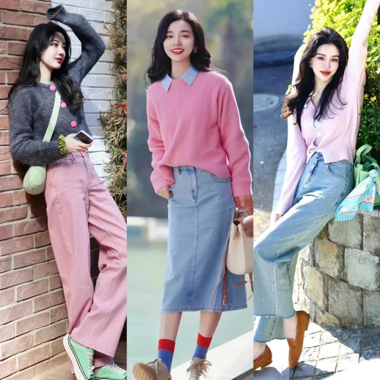 自古紅藍出CP,乾淨的藍色襯衫,配上甜美的粉色針織衫,給人一種溫柔細膩的美。淺藍色襯衫作爲內搭,翻出衣領更多了幾分新鮮感。