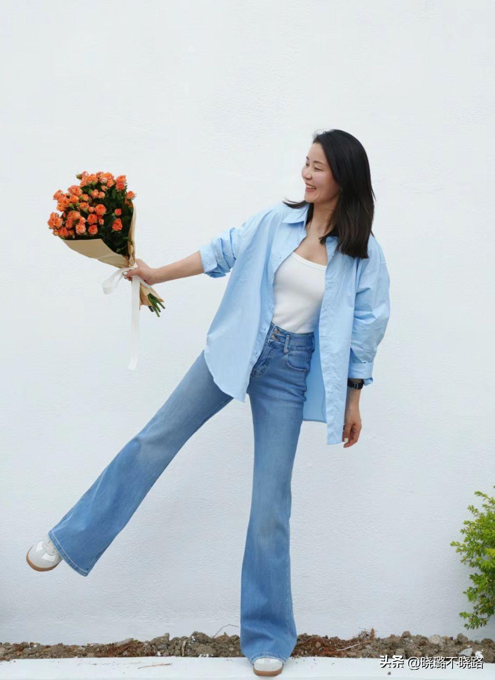 日常生活當中,冰川藍就很適合用於休閒單品上,比如中長款的基礎款襯衫,對於中年女性來說就非常友好。及膝蓋長度的冰川藍襯衫,疊穿一件霧霾藍針織吊帶,顯瘦又顯高。