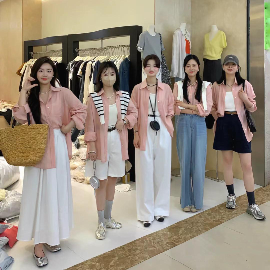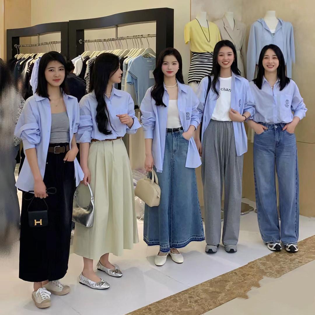 藍色系的襯衫,同樣是搭配比較寬鬆度版型。用藍色襯衫可以配直筒半身裙、或者闊腿牛仔褲、以及牛仔半身裙。面料輕薄的藍色襯衫,帶着清冷疏離美、也很顯氣質。