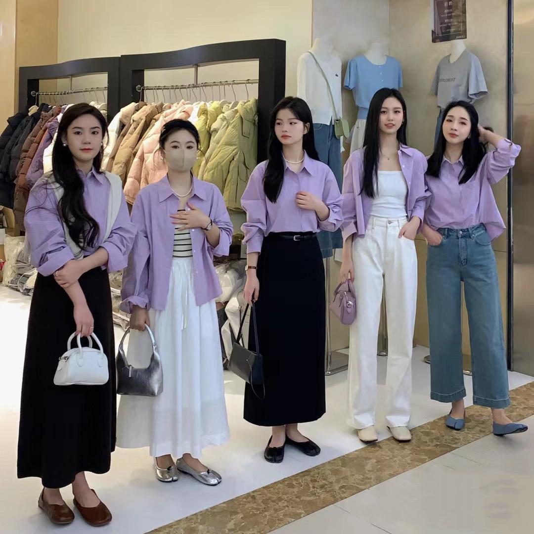 春季穿衣,可以不那麼單調,我們多在色彩上下功夫,就可以表現出更加時髦醒目的美。一件紫色系的襯衫,可以直接單穿、也可以當作小外套來穿着。