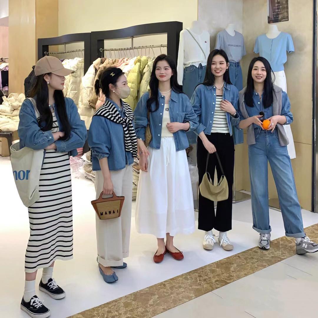 像這種深藍色的牛仔襯衫,我們可以選擇稍微短一點的款式。短款的牛仔襯衫,更有助於身材比例的優化。用藍色牛仔襯衫配牛仔褲、小黑褲、半身裙、連衣裙,都文藝大方。