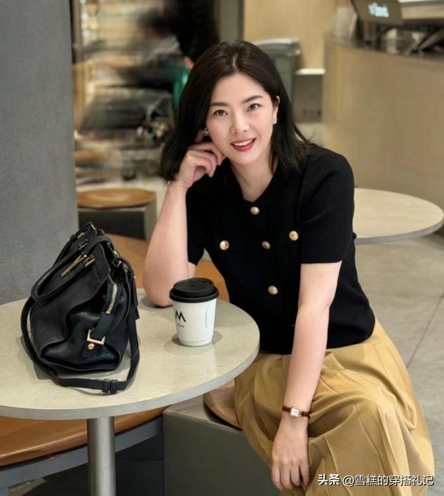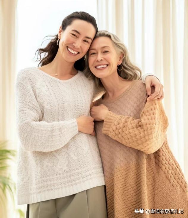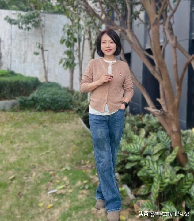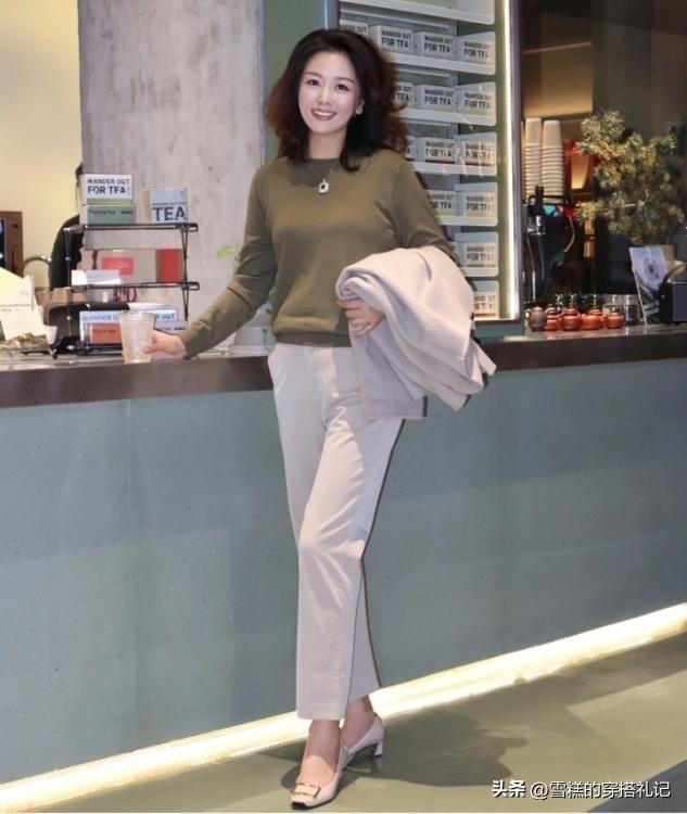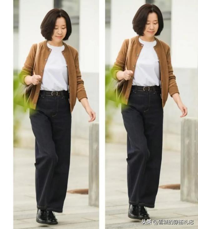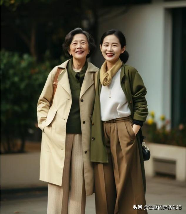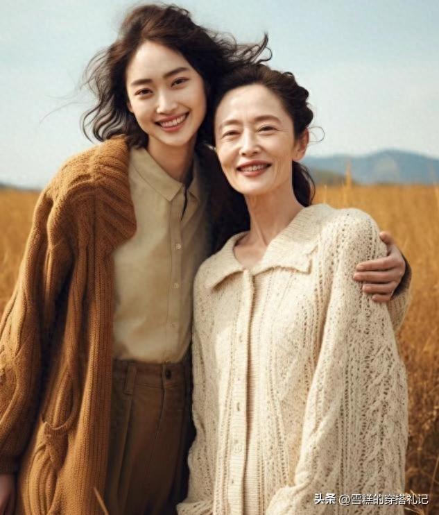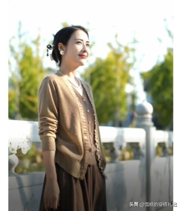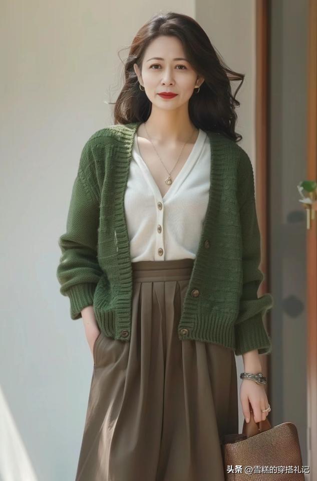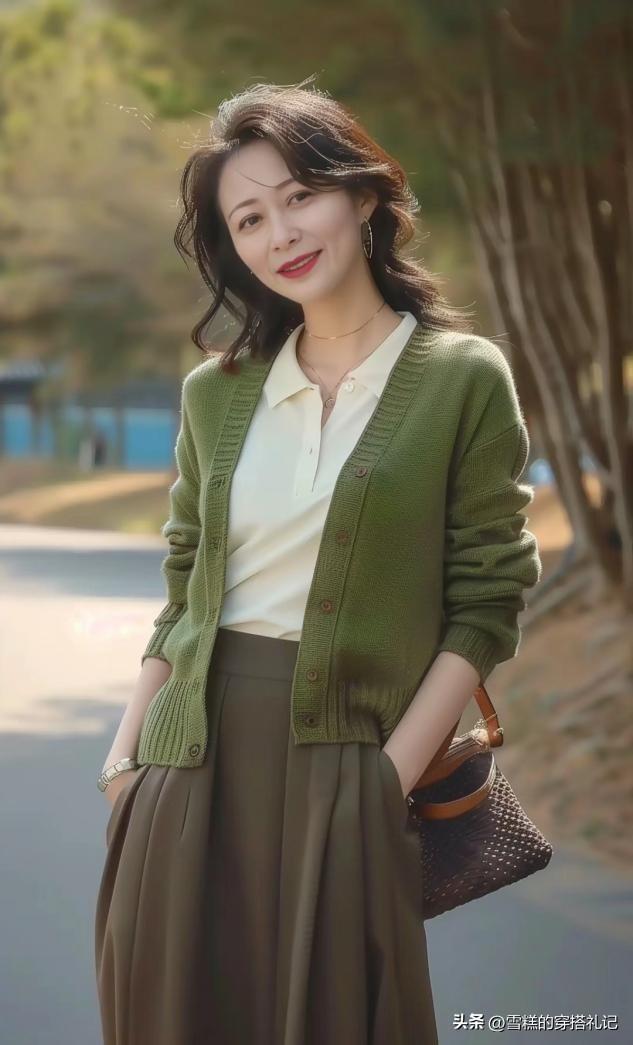媽媽們上了年紀之後,對於上衣的款式選擇總體來說並不適合修身,特別是春衫的上衣輪廓,如果我們換做一件開衫來疊穿的話,大領口以及大袖口的穿法,會讓你的穿衣更加得體。