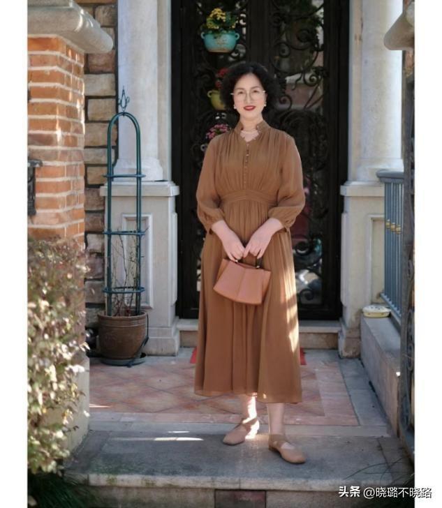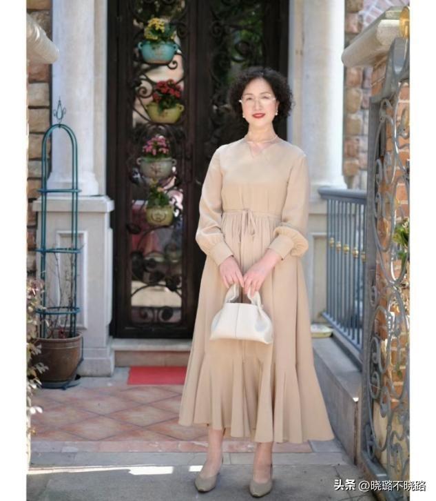 60多歲的女人去穿長款的連衣裙裝,可以嘗試延續遮過膝蓋長度的穿法,讓服裝的面料更多的遮蔽自己身材的短板,稍微露出一些肢體末端的皮膚,才能夠增加造型的穩重感和得體感,才能夠彰顯出60歲穿搭的品位。
