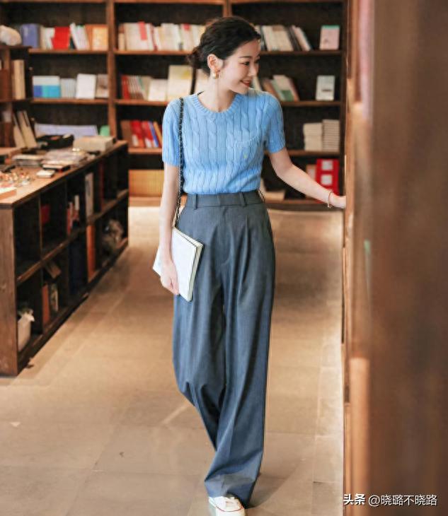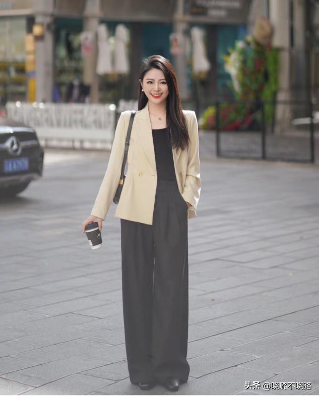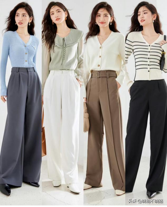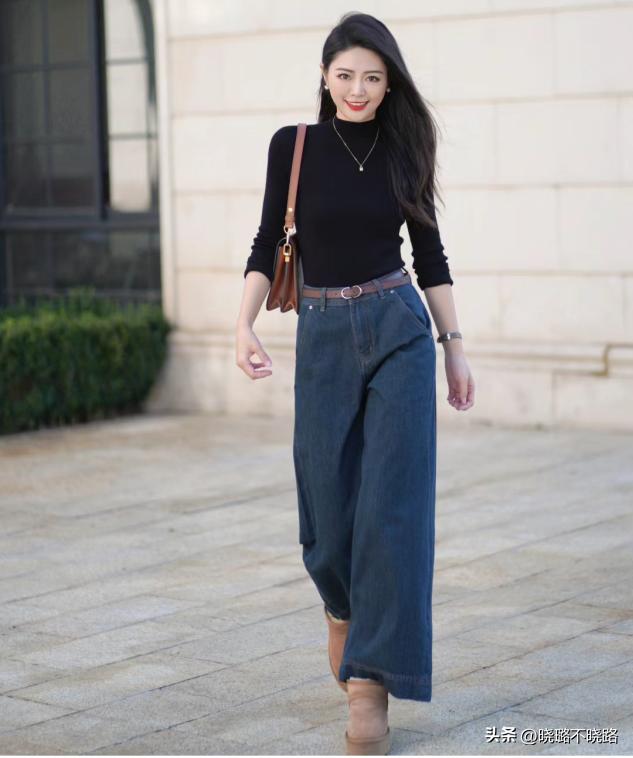 今年流行的寬腿褲與闊腿褲並不是一種褲子,整體的輪廓要比闊腿褲窄一些,穿起來沒有太沉悶的厚重感,顯得整個人更加輕盈利落一些。關鍵寬腿褲的垂感非常好,可以自然的拉長雙腿的長度,顯得人格外的高挑。