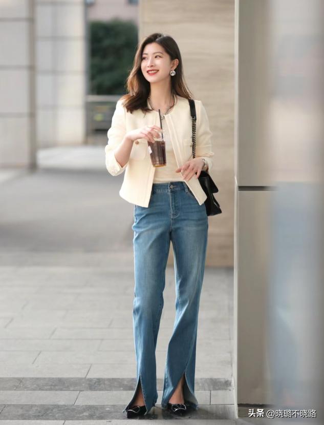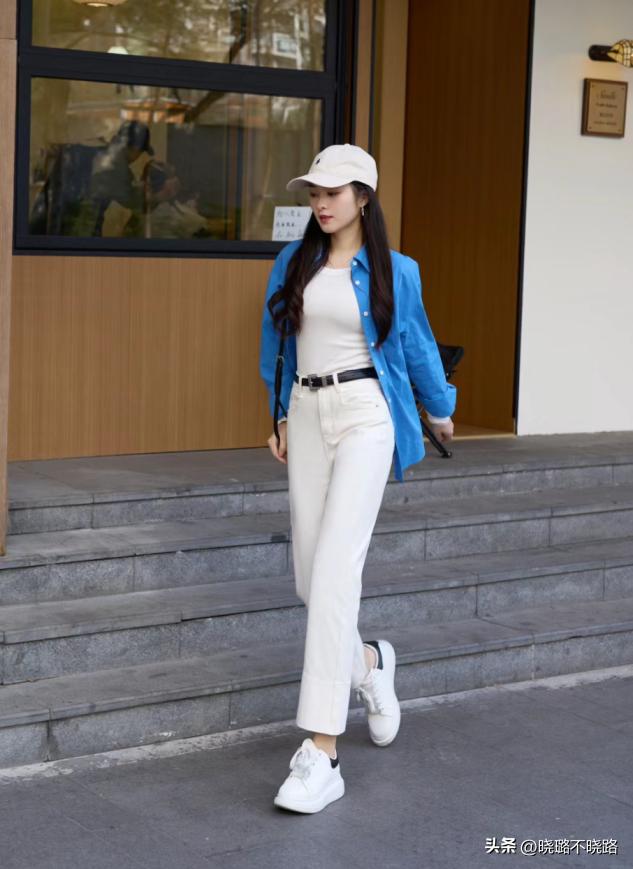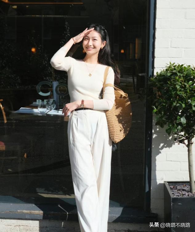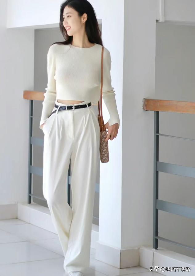 儘量避開常規長度的白褲子,很難穿出驚豔感,換成拖地的白褲子,可以順着褲腿的線條拉長腿長,顯得人又高又瘦。而九分長度的白褲子可以強調腳腕的線條,顯得人更加利落。