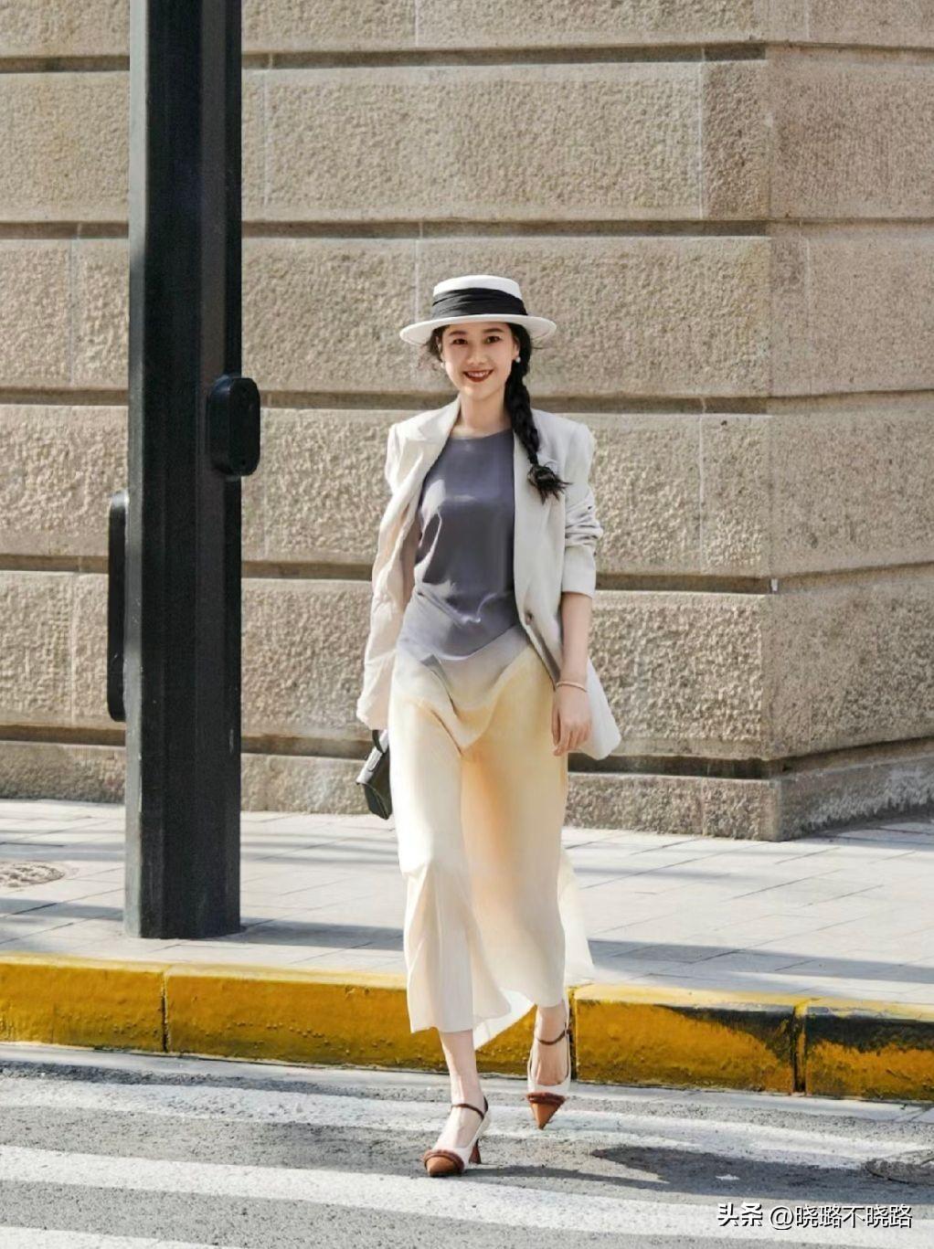 簡約型的懶人鞋在與裙裝進行搭配的時候,就一定要選擇低跟的設計,並且搭配一款具有優雅和溫柔集於一身的長款裙裝,最好色系也能夠選擇比較淺一些的顏色,又或者是飽和度較低一些的高級色系,對於輕熟感的襯托性還是要偏向於一些的。