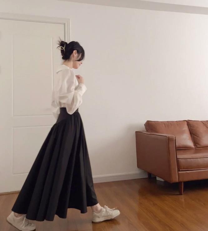 同時,寬大的裙襬也很好遮掩起你身上的缺點,特別是胯寬大腿粗的姐妹,選擇這種版型的裙子來穿再合適不過了。
