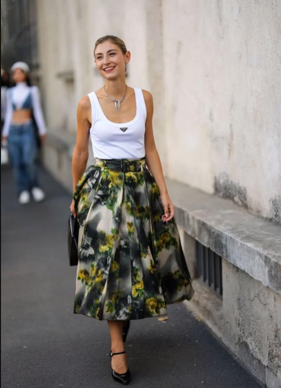 與純色的迷笛裙不同,印花款式的迷笛裙則讓你多了幾分浪漫的氣息,精美的花紋圖案點綴着,在春夏季節,這種印花迷笛裙最受歡迎了,搭配一雙舒適的涼鞋,就能能打造出迷人的度假風。