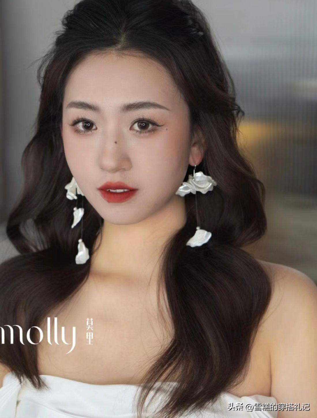 選擇髮型的時候最推薦的就是短款的微卷發以及非常減齡,具有少女感的黑長直,這兩款髮型的選擇其實與比較顯年輕的長相是非常極具契合度的。