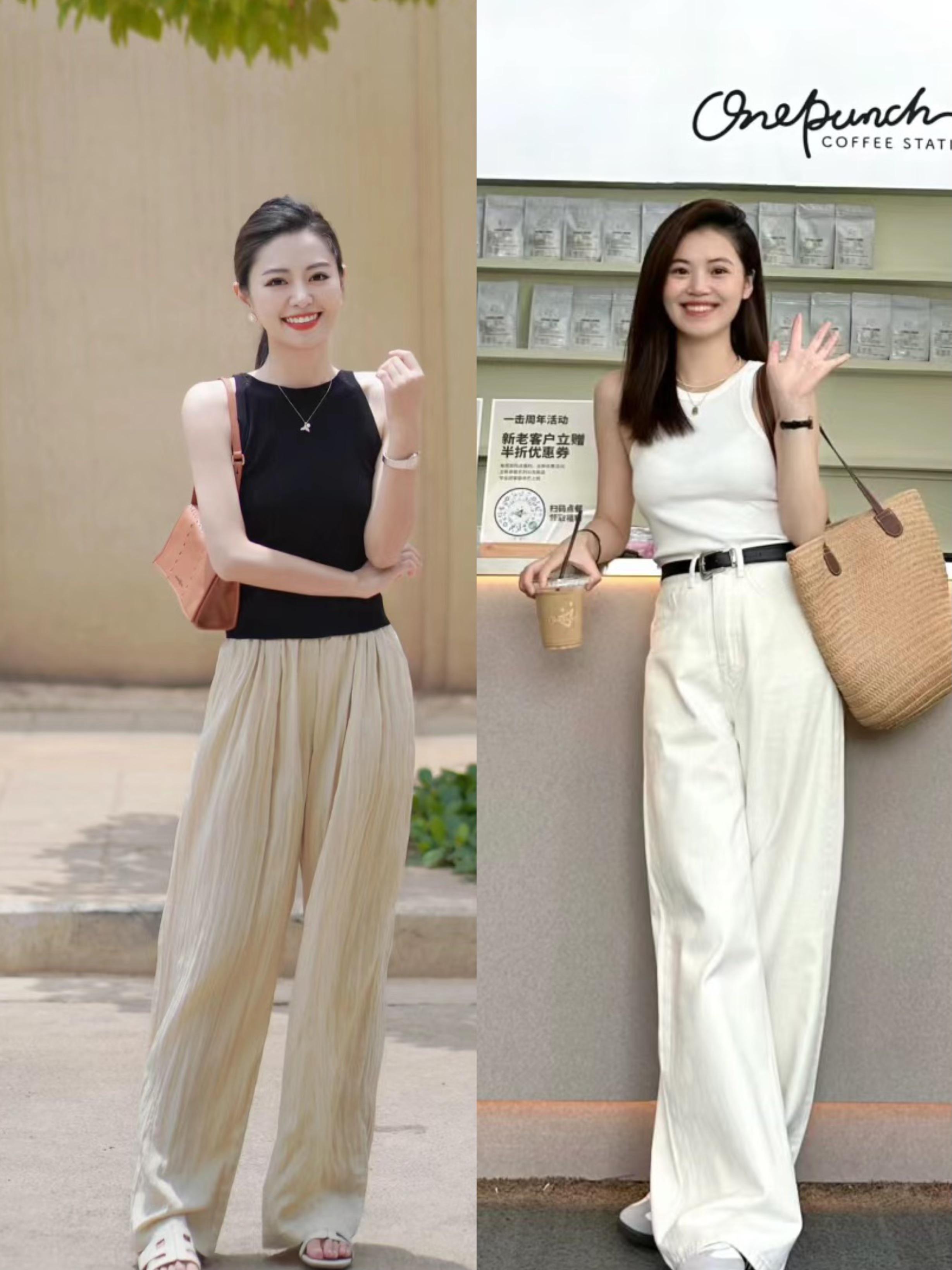 天氣轉暖,“小背心”成時尚新寵,配闊腿褲又美又颯真惹眼!