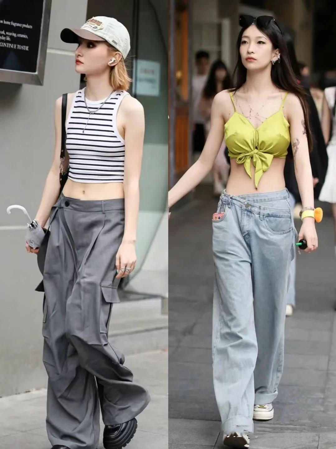 我們用露臍款的小背心來搭配融入了個性設計的闊腿褲,本就惹眼的穿搭變得更加醒目。腰部不規則的剪裁,或者寬鬆帥氣的工裝風闊腿褲,搭配露臍小背心都熱辣醒目。