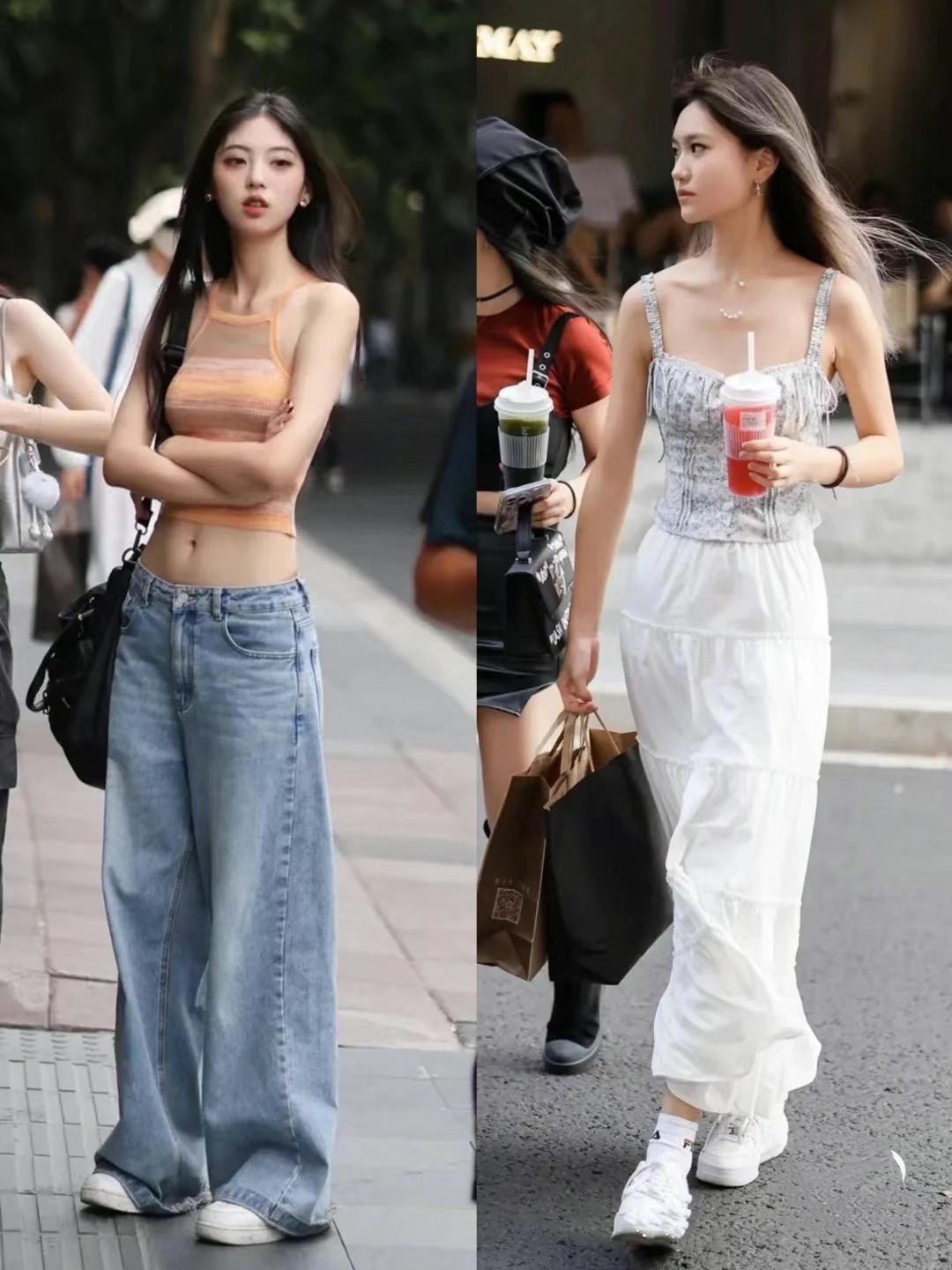 如果要穿着吊帶小背心,一定要保證自己擁有纖薄的身形。尤其是稍微苗條的女性,纔可以表現出這種輕盈時尚的美。直角肩、A4腰、天鵝頸,都更容易呈現。
