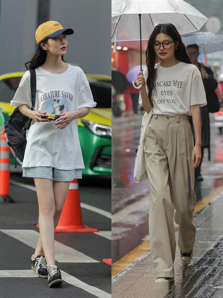 日常的搭配中,寬鬆的字母印花T恤也是比較舒適耐穿的。清冷的春末,我們可以用字母印花T恤搭配寬鬆的西裝闊腿褲,隨性大方。初夏的世界,還可以配牛仔短褲、清爽顯腿長。