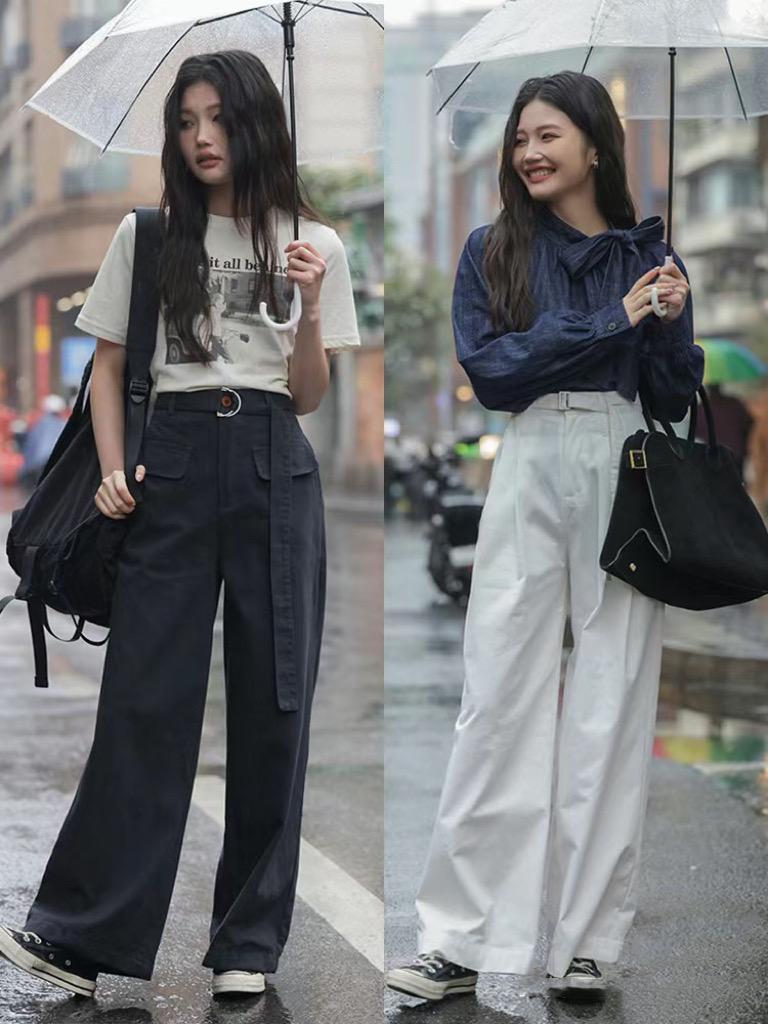 日常的搭配中,一條白色直筒褲、儘量選擇相對寬鬆的版型。寬鬆一點的白色直筒褲,舒適性足夠、包容性也不錯,搭配高腰的款式、擁有了大長腿的既視感。