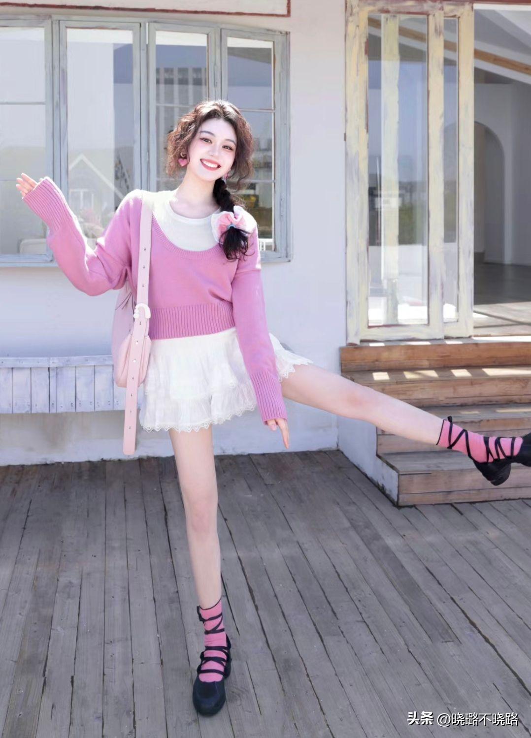針對於整個下半身的比例營造和彰顯一定的優勢,建議各位搭配短裙的時候最好能夠結合2分長的短襪元素,在搭配起來的時候結合老爹鞋或者是其他厚底的一些鞋型單品,針對於整個下半身的狀態來看的話,28分的纖長感比例極具完美性,並且可以起到直接增高的效果。