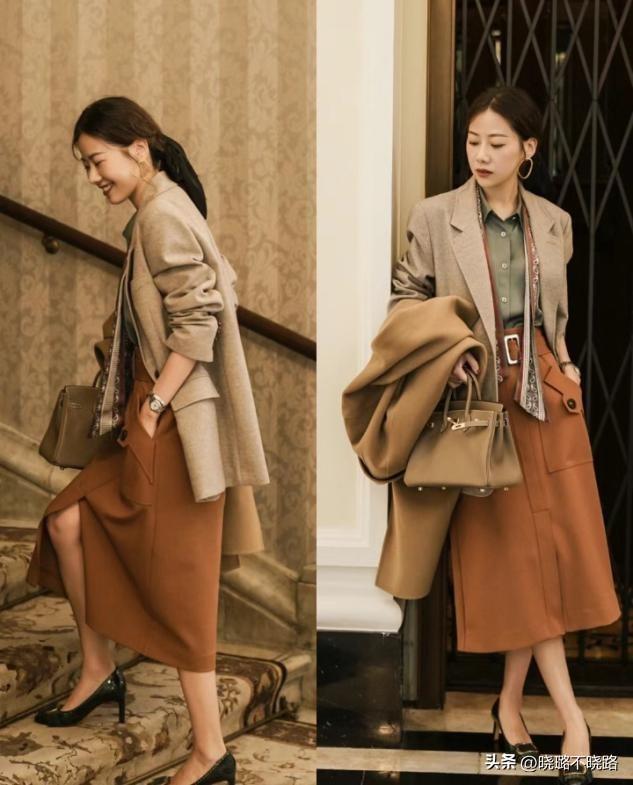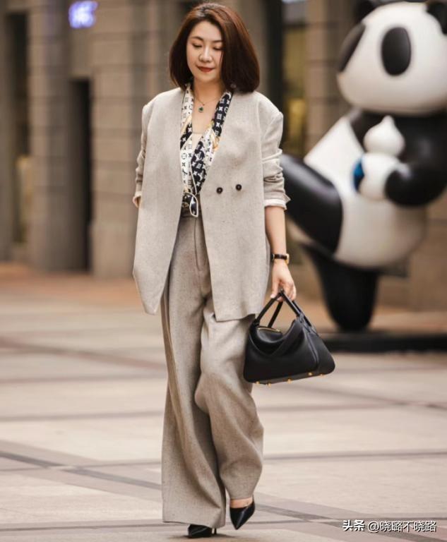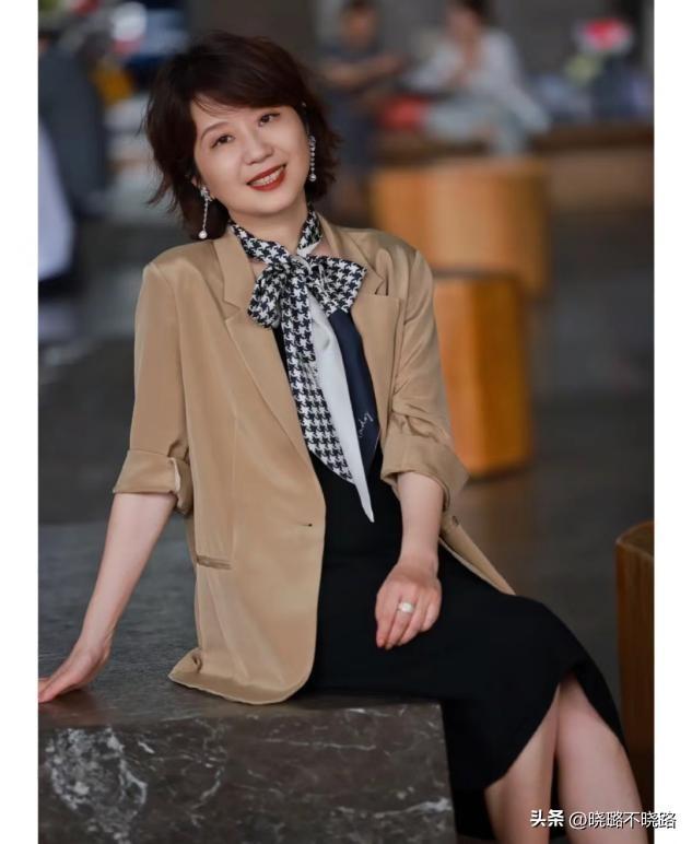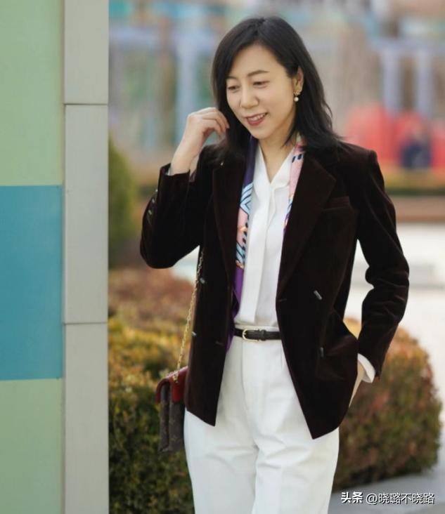 領口部分空白的地方嘗試用絲巾或者是項鍊作爲點綴,不要讓皮膚露出的佔比太多,媽媽們,穿搭西裝外套的時候,顏色可以柔和一點,穿在上半身才有提亮面部氣色的效果。