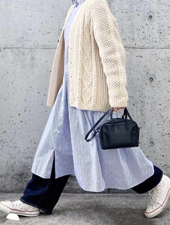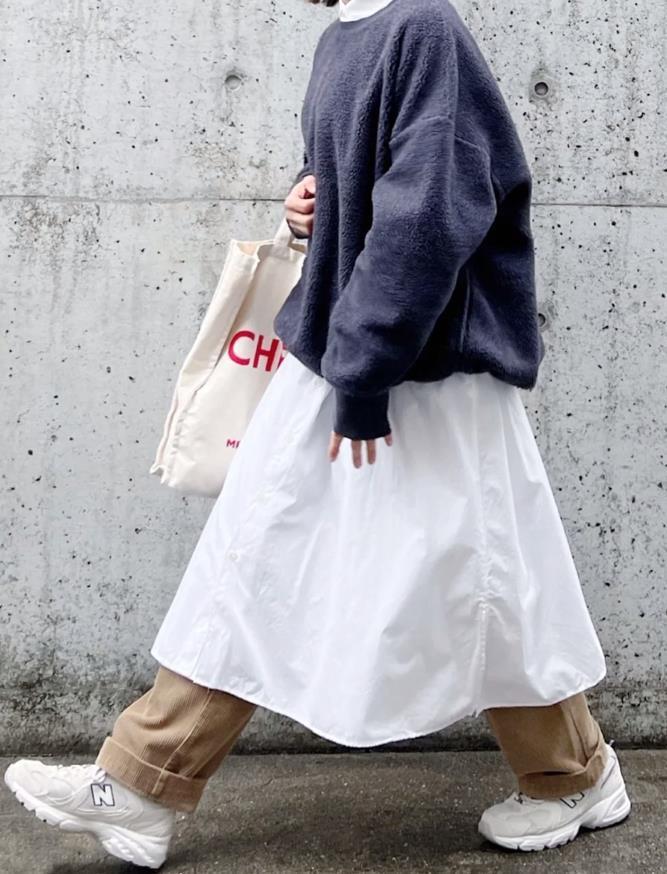 至於裙子的寬度,自然也是要寬鬆一些的,如果你的褲子是緊身的,那麼裙子版型寬鬆一些,就形成了鬆緊組合,當然,想要穿得隨性一些,褲子也可以選闊腿的版型,與同樣寬鬆的裙子相配,則更輕鬆自在。