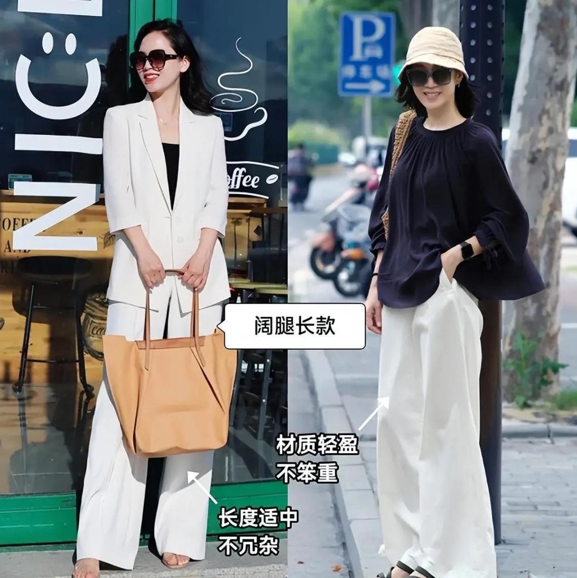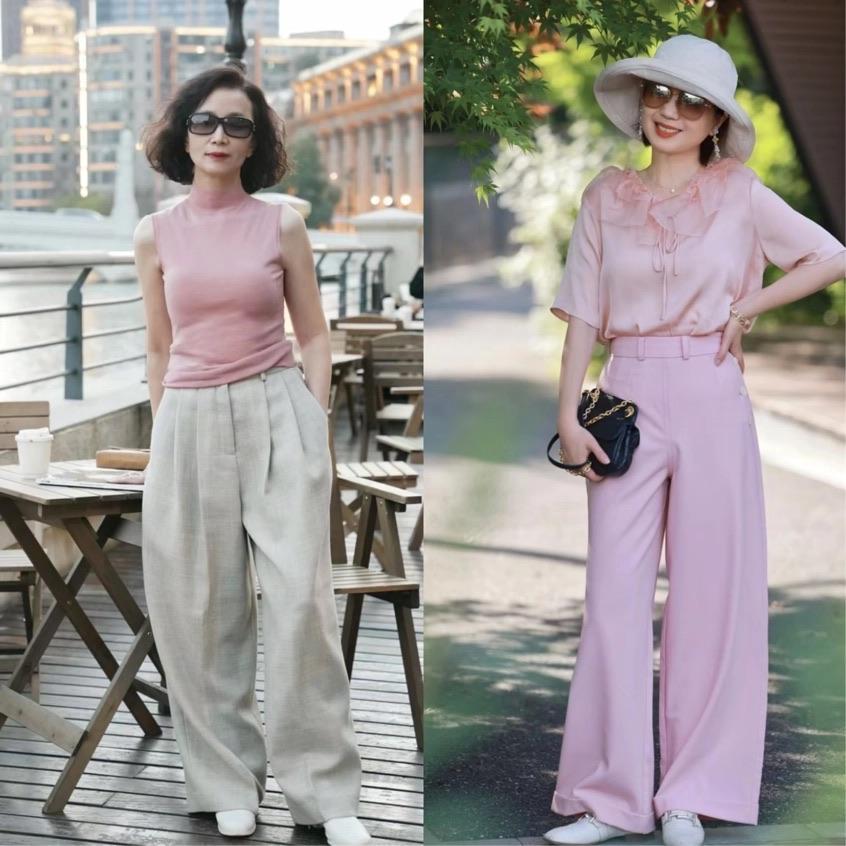 不管是40歲還是50歲的女人,都可以選擇這種材質輕盈、大方不拖沓的闊腿褲。寬鬆的闊腿褲,配以上方跟的鞋子,盡顯高級體面、也塑造出挺拔的身形、優越的雙腿。