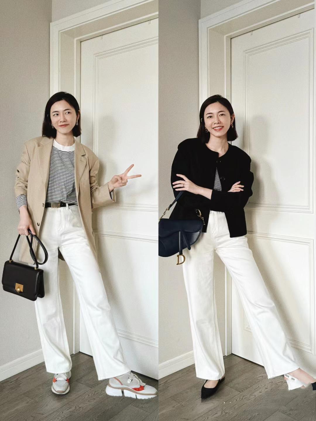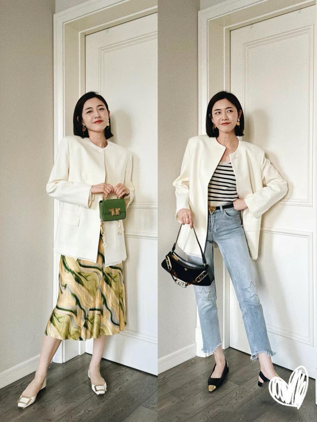 春天裏的小香風外套,面料可以更加輕盈一點、色彩也可以更加明亮一點。比如白色系的小香風外套,稍微寬鬆的版型,穿起來就大方又提氣質。